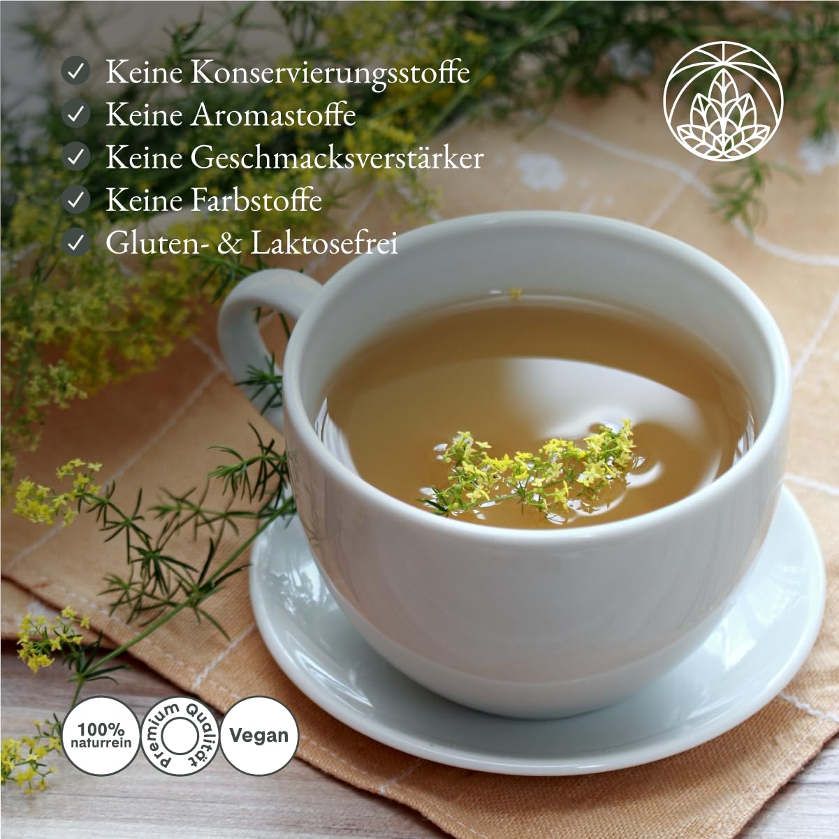 • Gönnen Sie sich ein erfrischendes, köstliches Getränk, das Ihren Durst stillt und zudem reich an nützlichen Substanzen ist. Labkraut Tee ist bekannt für seinen feinen Geschmack und seine vielseitige Verwendung in der Kräuterkunde.