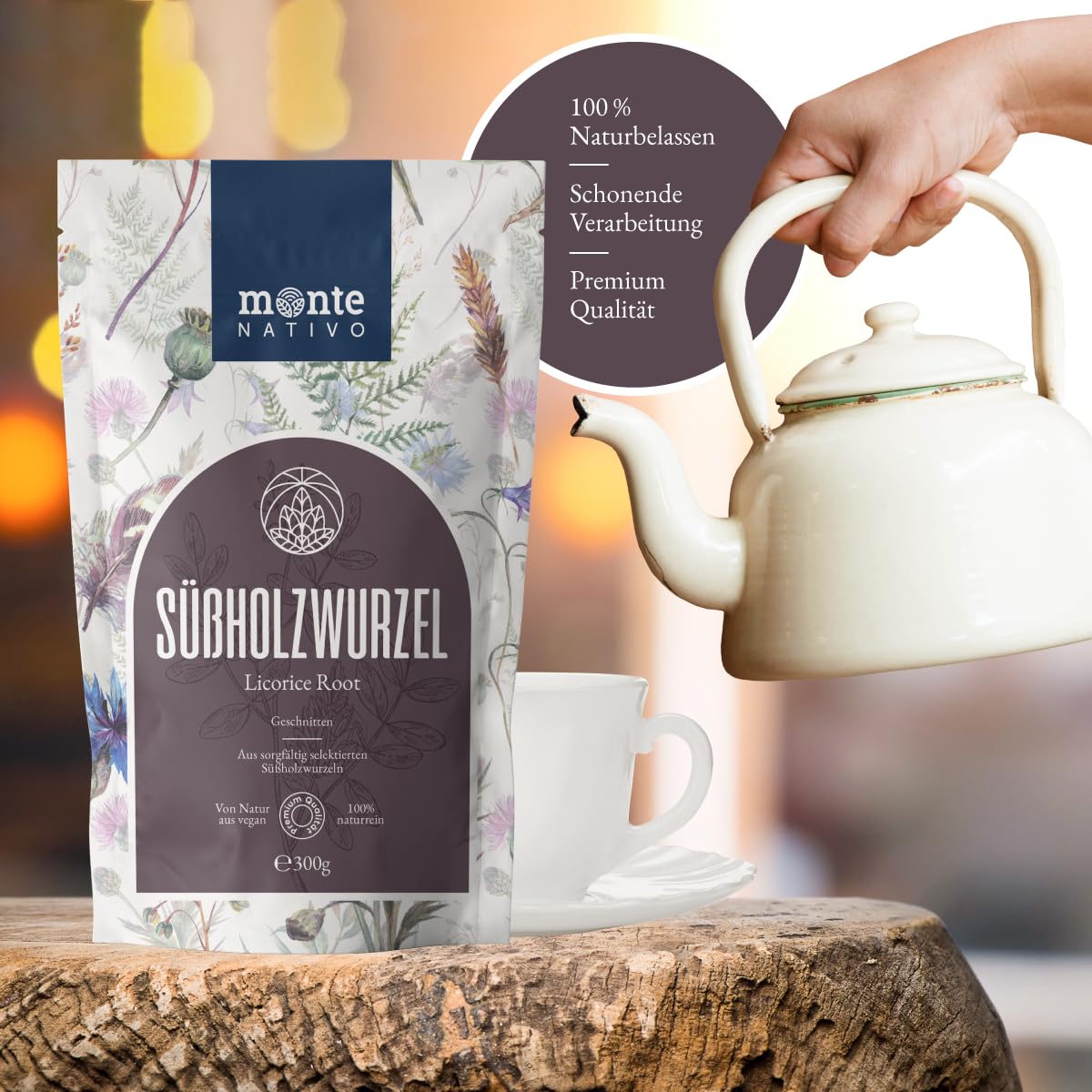Süßholzwurzel Tee Monte Nativo (300g) - Süssholzwurzel Tee schonend getrocknet und geschnitten - Süßholz reich an natürlicher Süße und ohne Zusatzstoffe - Licorice root (Glycyrrhiza glabra)