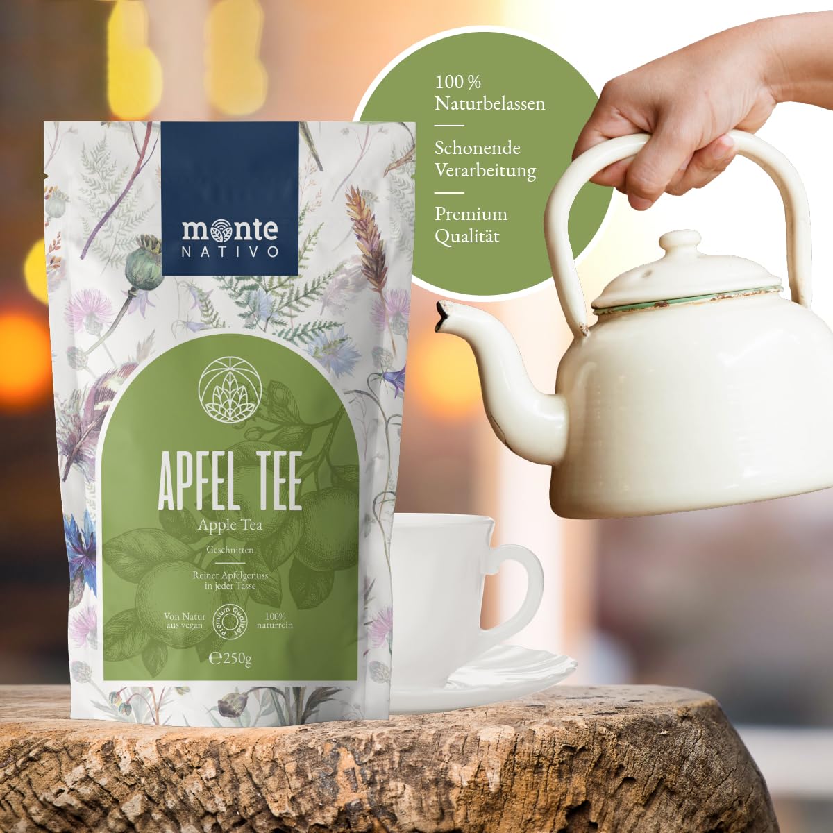 Apfel Tee Monte Nativo (250g) – Apfeltee lose und fruchtig – Fruchttee aus getrockneten Apfelstücken – Natürlich und ohne Zusätze – Apfel Eistee frisch gebrüht als Sommer-Infusion oder Heissgetränk