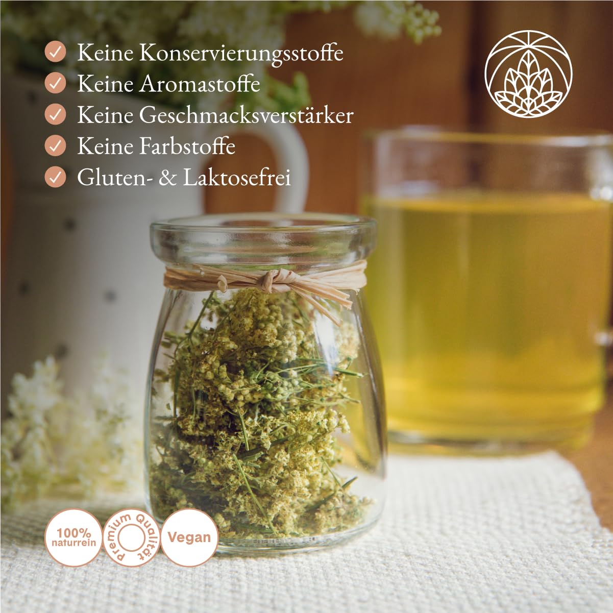 • Alle Blätter werden mit grosser Sorgfalt gepflückt, verpackt und schonend getrocknet, um sicherzustellen, dass alle ihre gesunden Inhaltsstoffe erhalten bleiben. So entsteht ein aromatischer Mädesüss Tee, der sowohl als Mädesüsstee heiss wie auch kalt ein echter Genuss ist – natürlich, rein und voller Pflanzenkraft.
