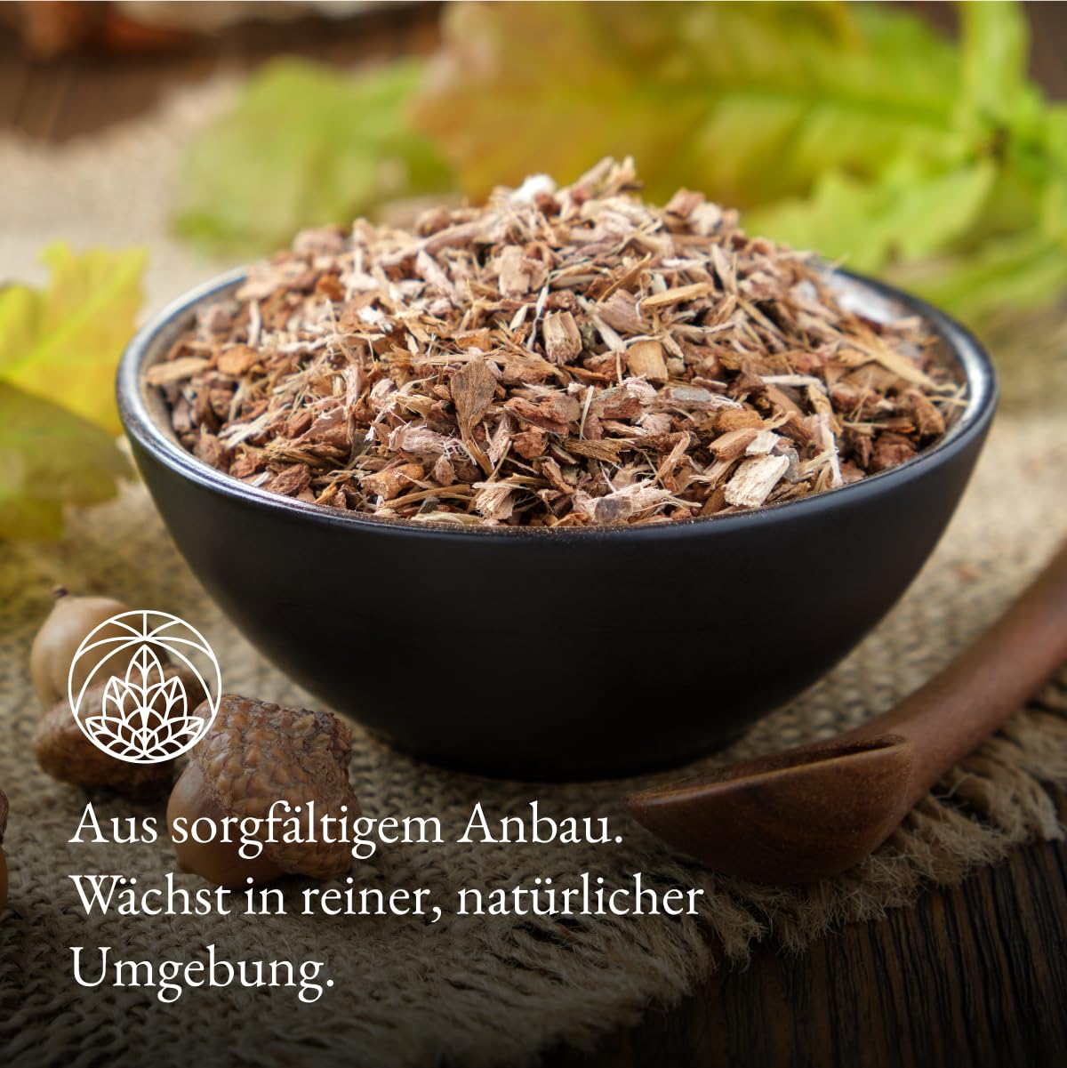 Entdecken Sie die Kraft der Natur mit unserer schonend verarbeiteten Eichenrinde – ein traditionelles Naturprodukt, das seit Jahrhunderten für seine vielseitigen Eigenschaften geschätzt wird. Unsere Eichenrinde stammt aus 100% fairem Anbau und wird mit höchster Sorgfalt geerntet, verpackt und getrocknet, um alle wertvollen Inhaltsstoffe bestmöglich zu bewahren. Eichenrindetee ist eine wunderbare Möglichkeit, die positiven Eigenschaften der Eichenrinde auf natürliche Weise zu geniessen. Der Tee hat einen angenehm herben, erdigen Geschmack und eignet sich hervorragend für bewusste Geniesser, die auf naturbelassene Qualität setzen. Ob heiss aufgegossen an kalten Tagen oder als erfrischender Eistee im Sommer – Eichenrindetee passt sich perfekt Ihren Bedürfnissen an. Unsere Eichenrinde enthält von Natur aus wertvolle Gerbstoffe, die traditionell in der Volksheilkunde geschätzt werden. Die Rinde wird direkt nach der Ernte schonend luftgetrocknet, sodass ihre natürlichen Aromen und Wirkstoffe erhalten bleiben. Ideal für die Zubereitung als Tee – aber auch für äusserliche Anwendungen geeignet. Besonders beliebt ist Eichenrinde auch zur Herstellung von natürlichen Pflegeanwendungen wie Sitzbädern und Fussbädern. Ein warmes Eichenrinde Fussbad oder Eichenrinde Sitzbad kann wohltuend und beruhigend auf die Haut wirken – ganz im Einklang mit alten Hausrezepten und moderner Naturpflege.