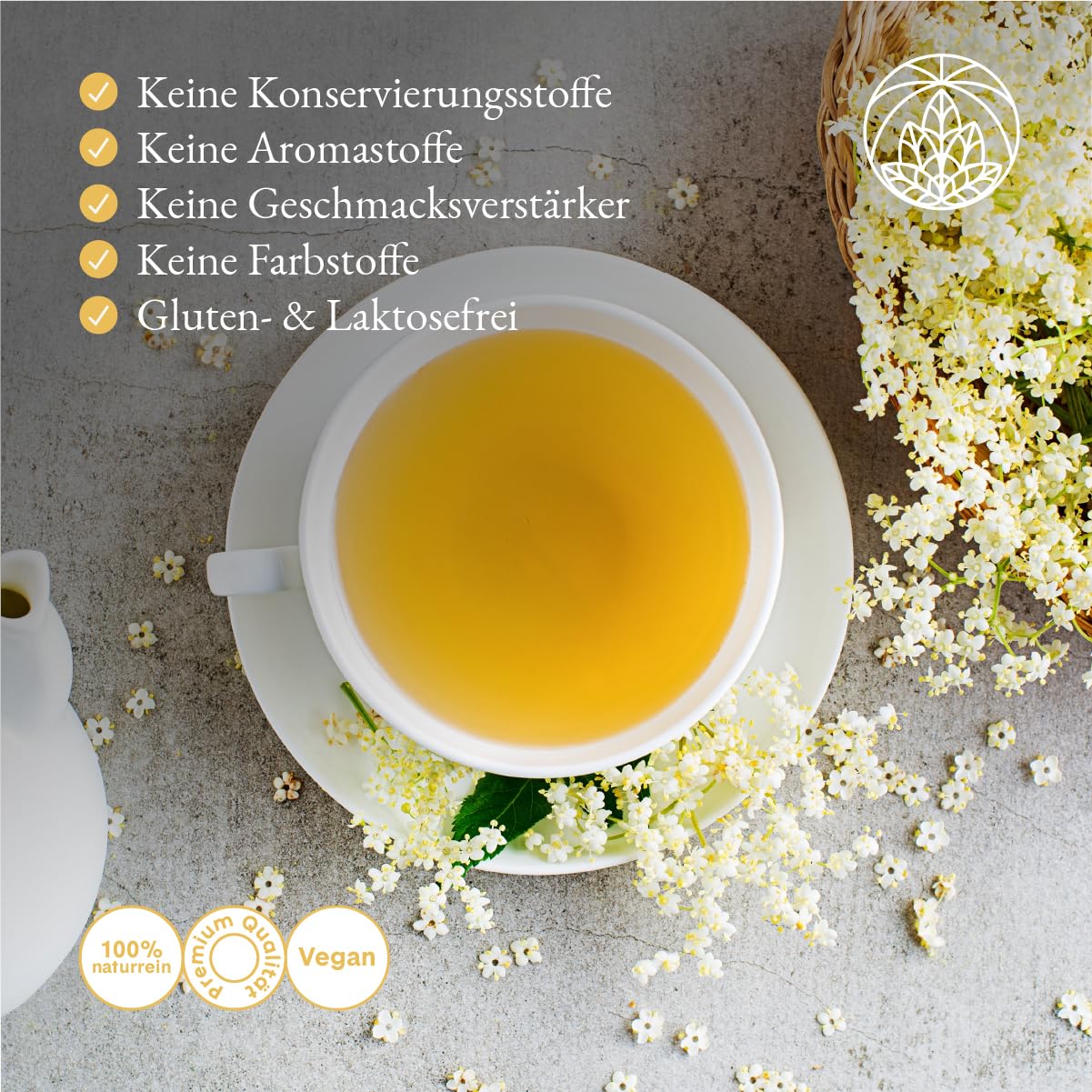 Holunderblütentee Monte Nativo (200g) - Holunderblüten schonend getrocknet als Holundertee - 100% natürlich und ohne Zusatzstoffe - Aromatischer Kräutertee für einen köstlichen Aufguss