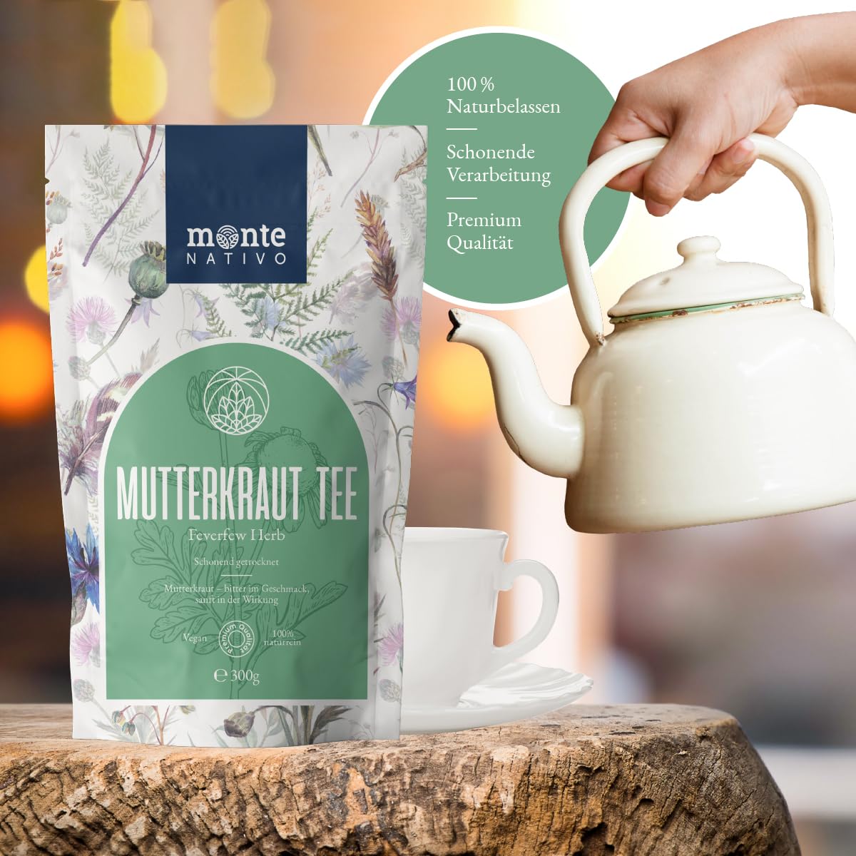 Mindestanzahl für die Bestellung von "Mutterkraut Tee Monte Nativo (300g) - Mutterkraut schonend getrocknet - Tee lose 100% natürlich und ohne Zusatzstoffe - Aromatischer Kräutertee für einen köstlichen Aufguss" ist 1.