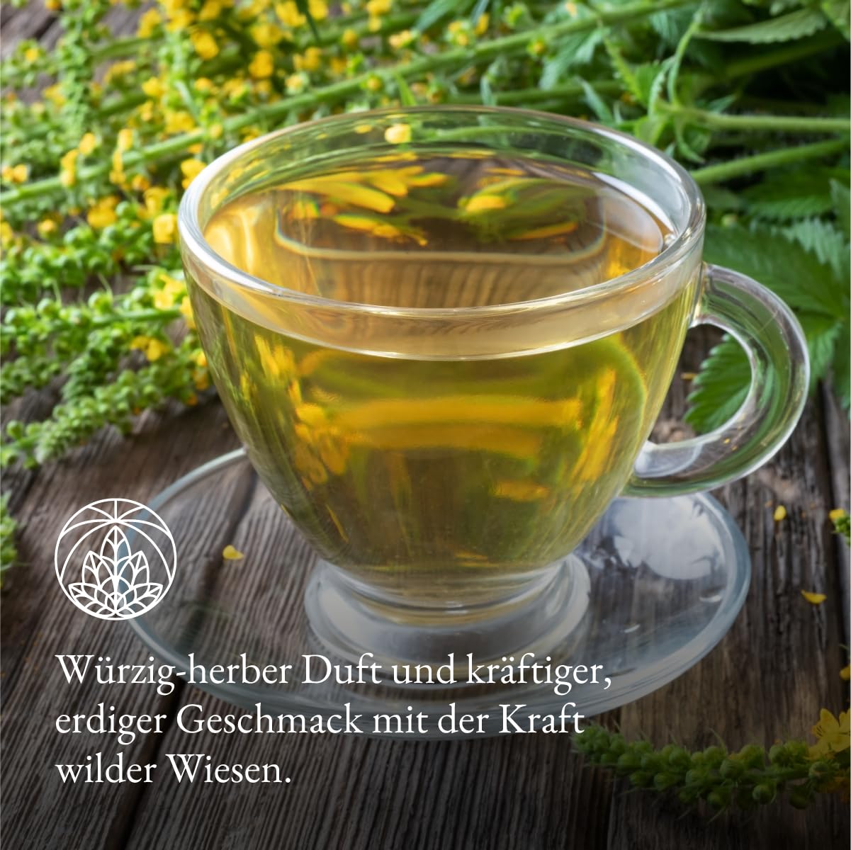 • Unser Odermennig Tee wird aus rein natürlichen Pflanzen hergestellt, die aus kontrolliertem und fairem Anbau stammen. Die sorgfältig ausgewählten Blätter werden behutsam geerntet und schonend verarbeitet, um den ursprünglichen Charakter und das aromatische Profil der Pflanze zu bewahren. So entsteht ein Tee, der nicht nur durch seine Qualität, sondern auch durch seine Authentizität überzeugt.