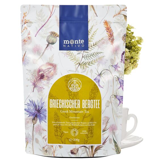 Griechischer Bergtee Monte Nativo (200g) - Greek Mountain Tea - Stimulierend und gesunder Sideritis Scardica - Immunsystem stärken - 100% natürlich - ohne Zusatzstoffe - Aromatischer Kräutertee lose