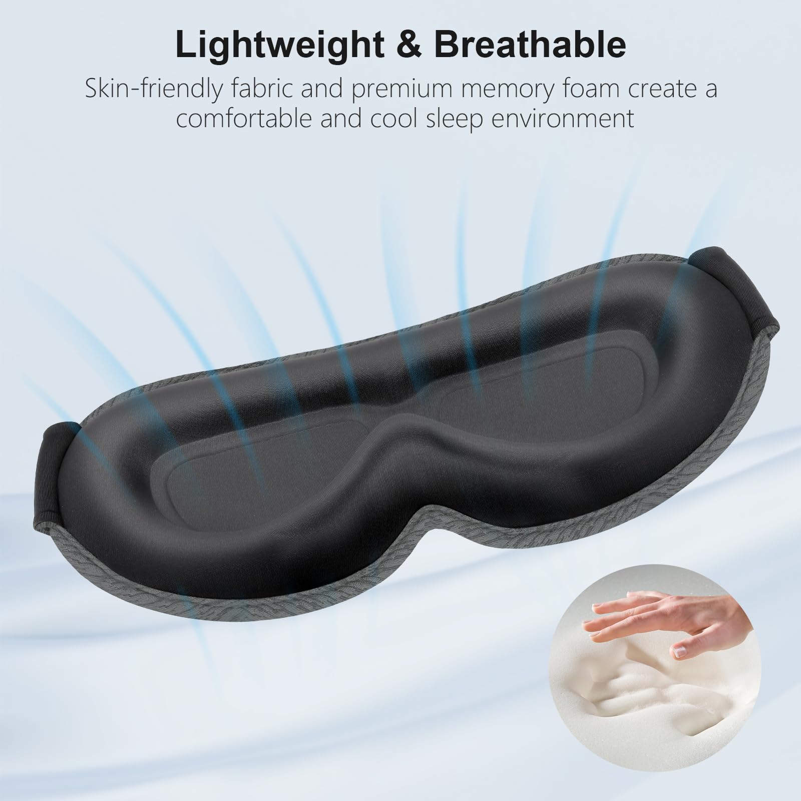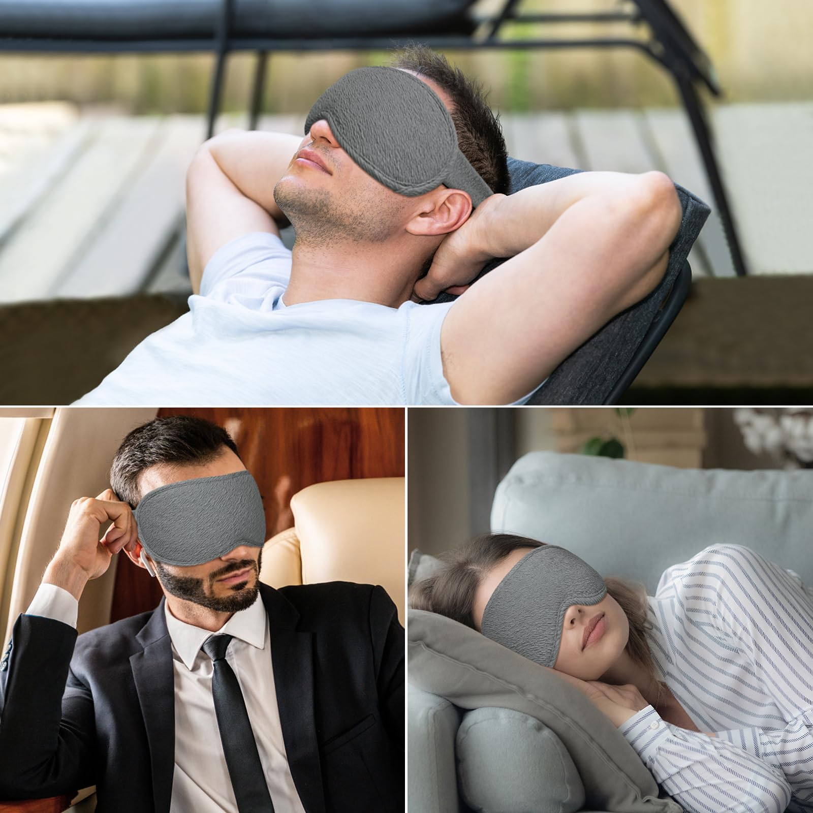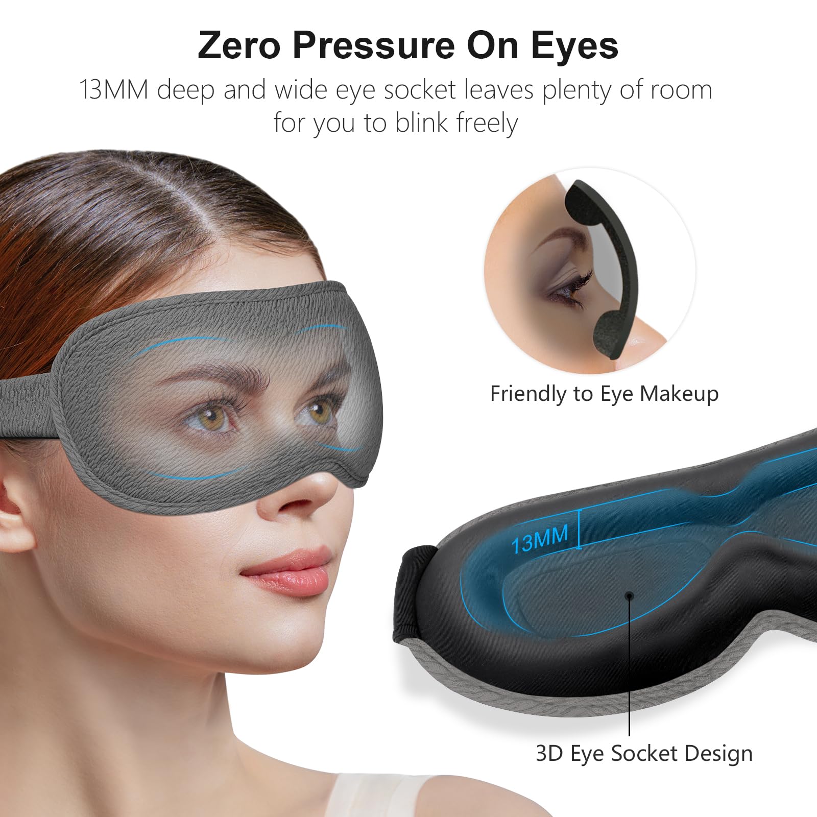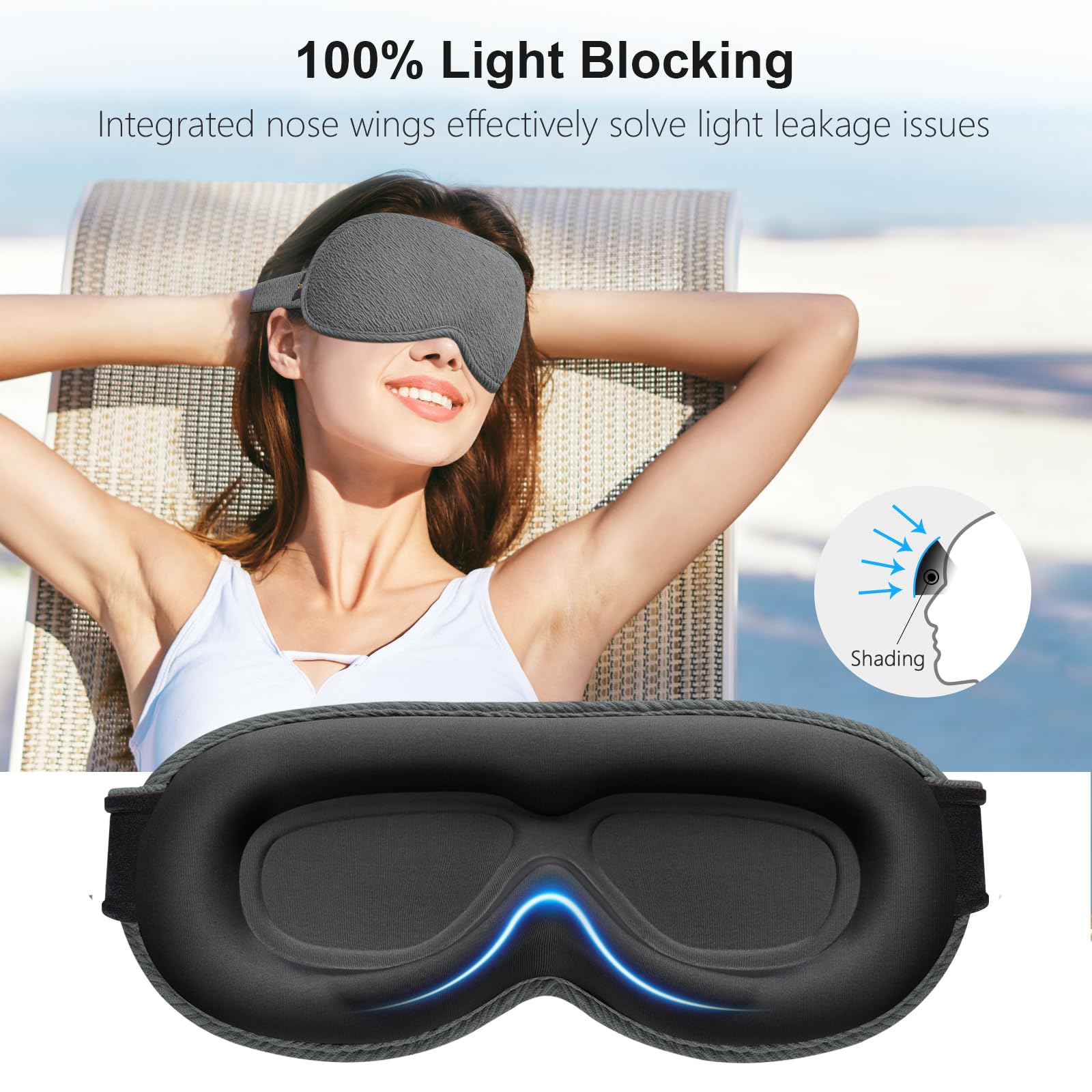 Gritin 3D Schlafmaske für Seitenschläfer, Upgrade Atmungsaktive Schlafbrille mit Verstellbar Gummiband, Lichtblockierend, Bequem & Ergonomisch Augenmaske, 2 Paar Ohrstöpseln, Grau
