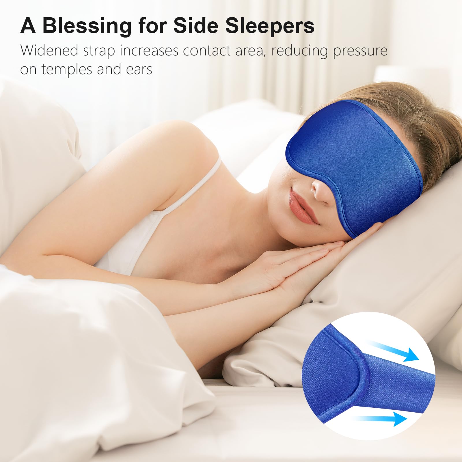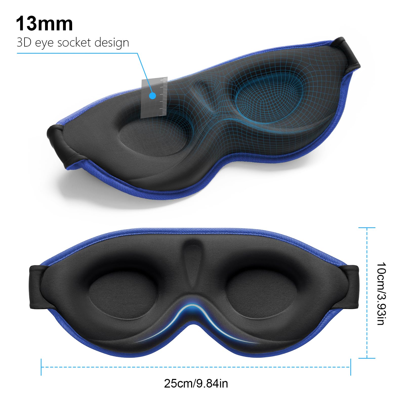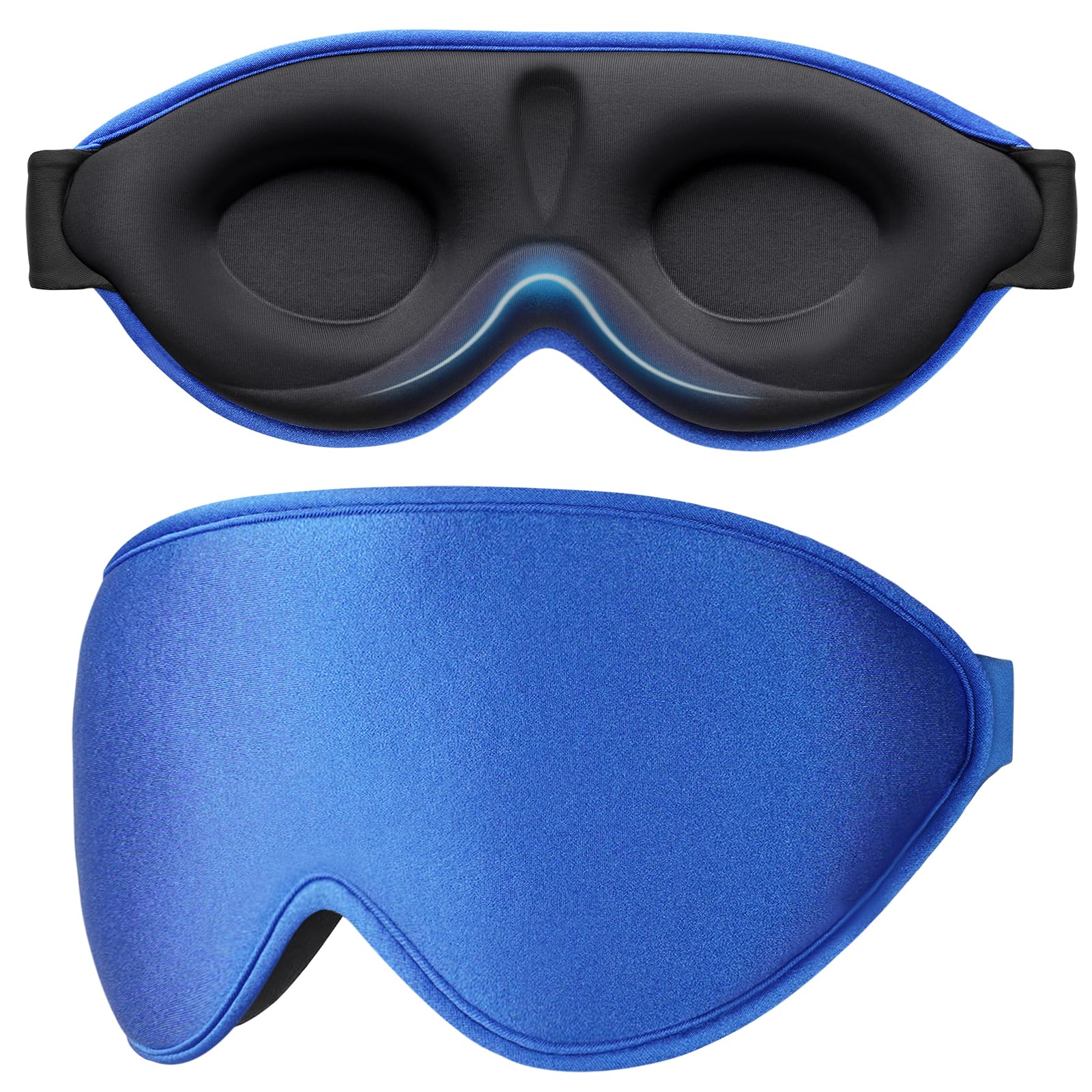 Gritin Schlafmaske für Seitenschläfer, 3D Augenhöhlen Schlafbrille mit Verstellbar Gummiband, Lichtblockierend und Atmungsaktiv, Bequem Augenmaske für Mann und Frau, 2 Paar Ohrstöpseln, Saphirblau