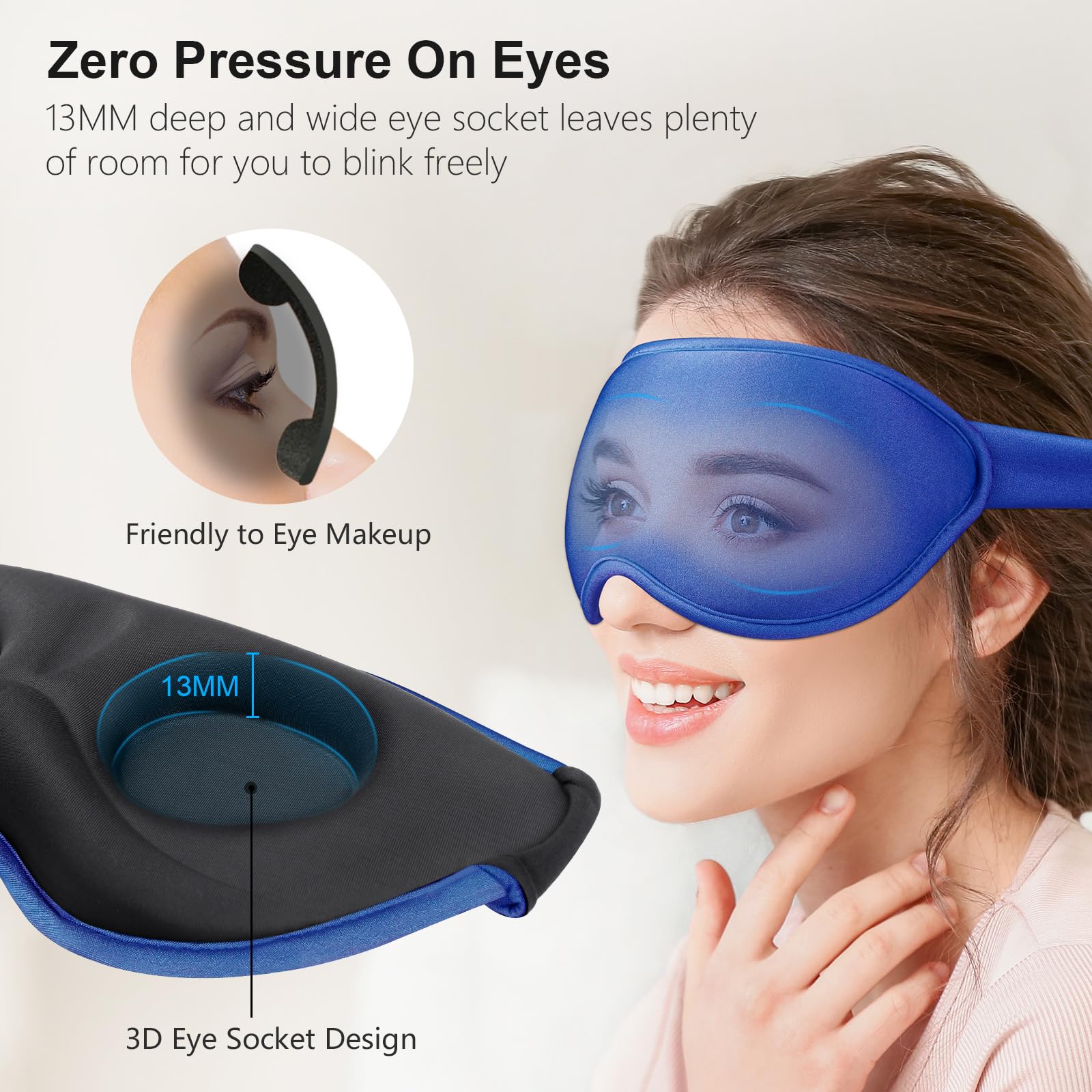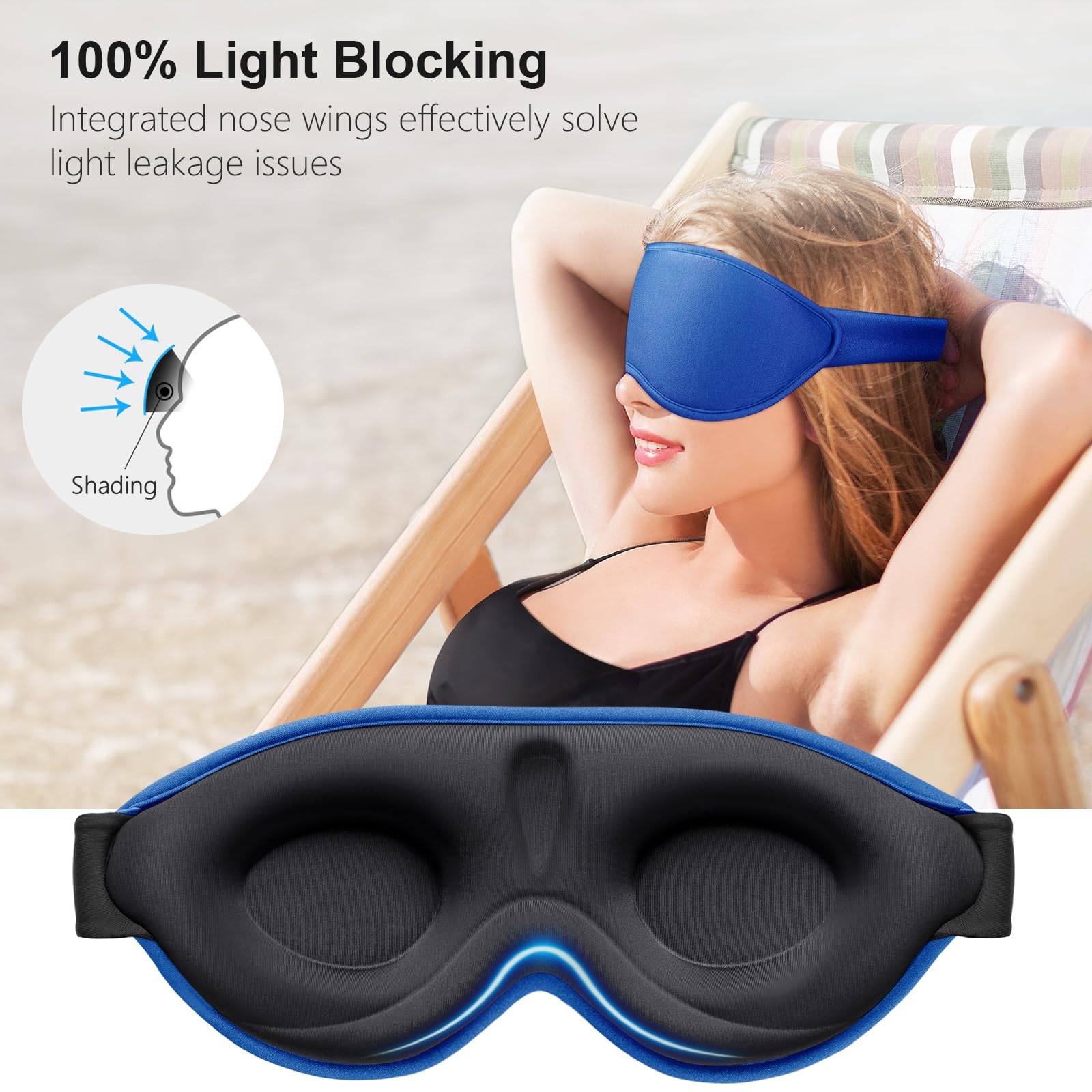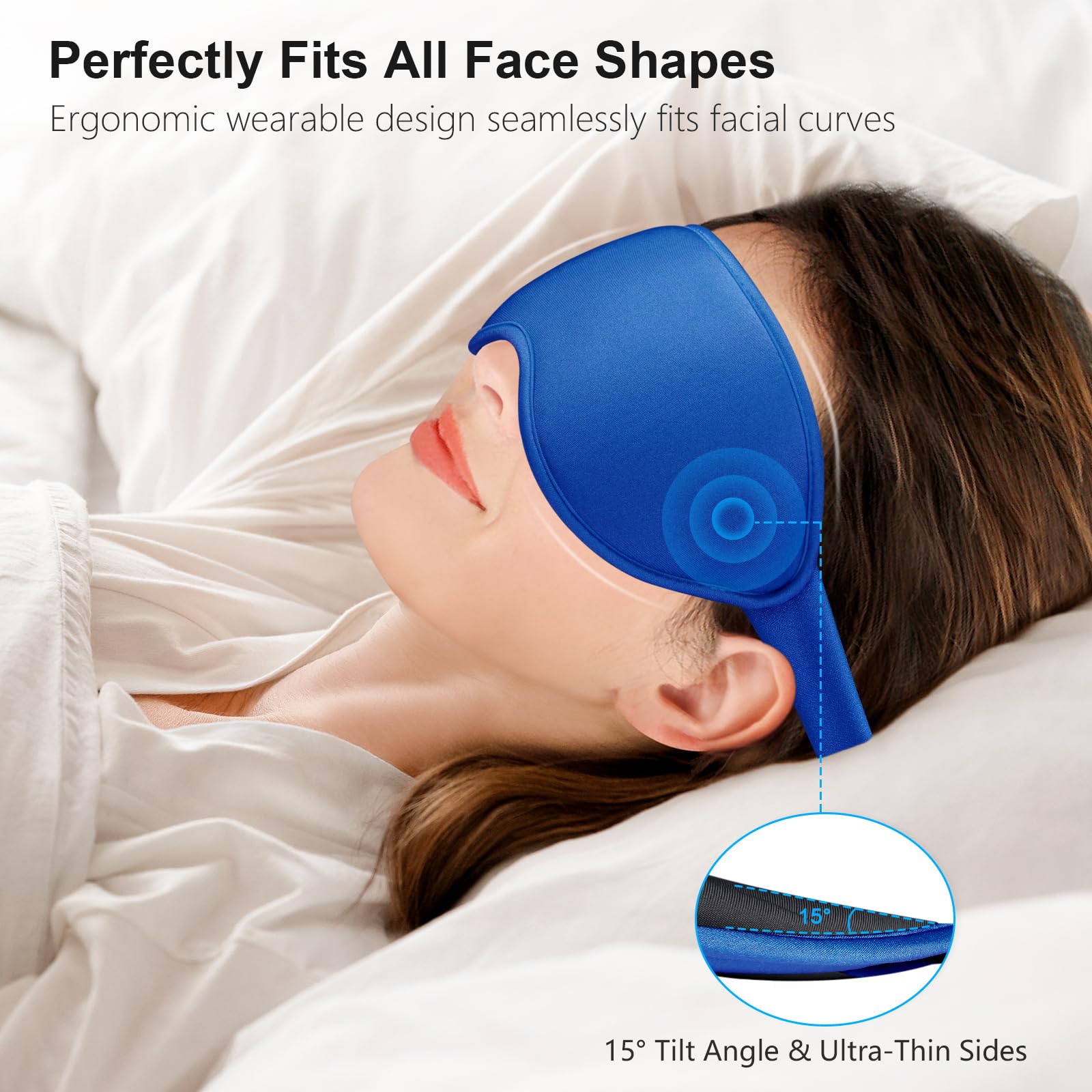 Gritin Schlafmaske für Seitenschläfer, 3D Augenhöhlen Schlafbrille mit Verstellbar Gummiband, Lichtblockierend und Atmungsaktiv, Bequem Augenmaske für Mann und Frau, 2 Paar Ohrstöpseln, Saphirblau
