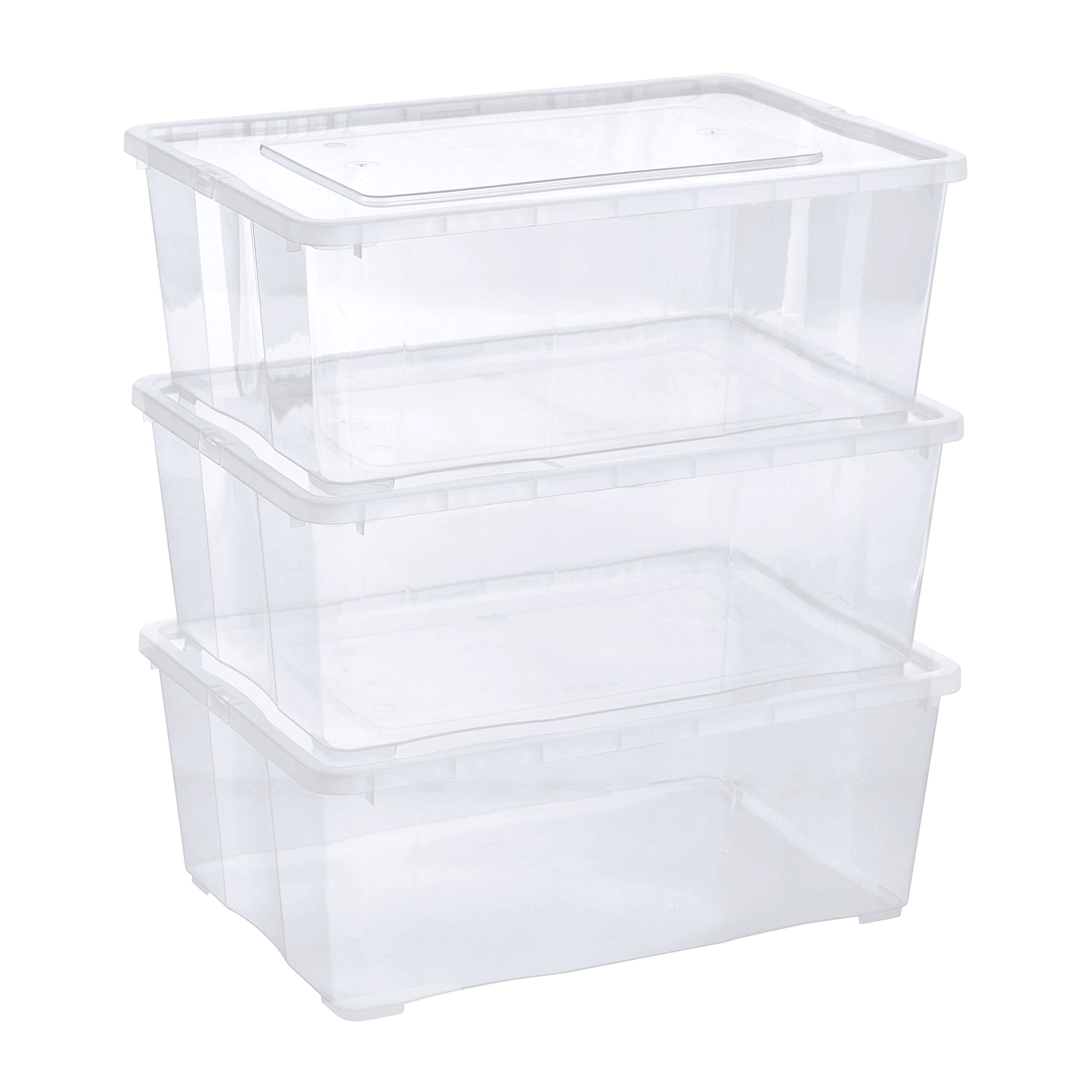 Grizzly Aufbewahrungsboxen 3 x 10 L mit Deckel transparent - Klarsichtboxen stapelbar mit Belüftung