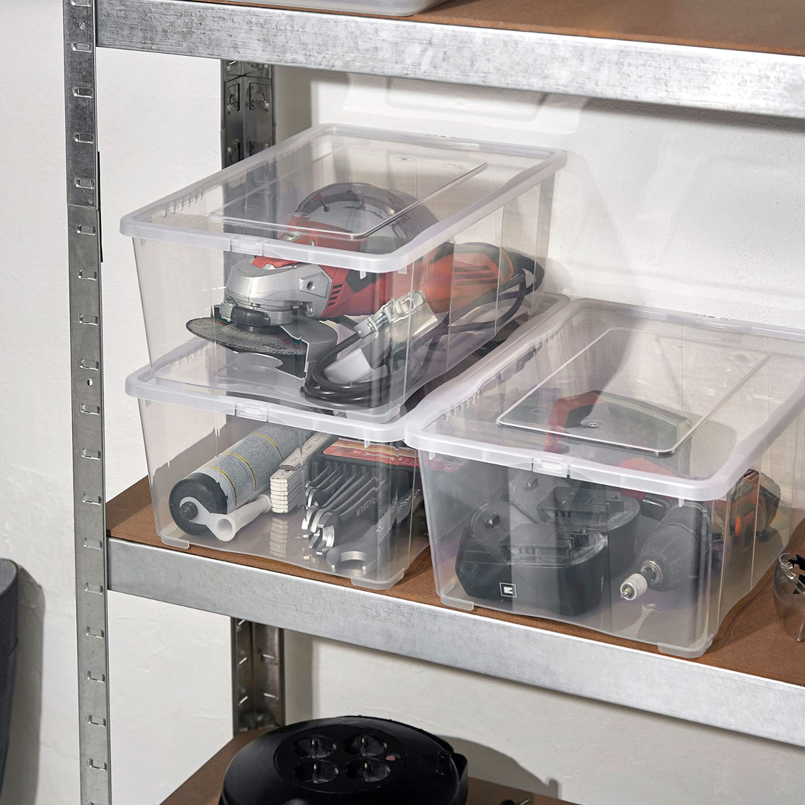 Diese Aufbewahrungsboxen sind unverzichtbar zu Hause, im Büro aber auch im Auto. Stapelbar, spart Platz in Ankleidezimmer, Schlafzimmer, Keller oder Garage.