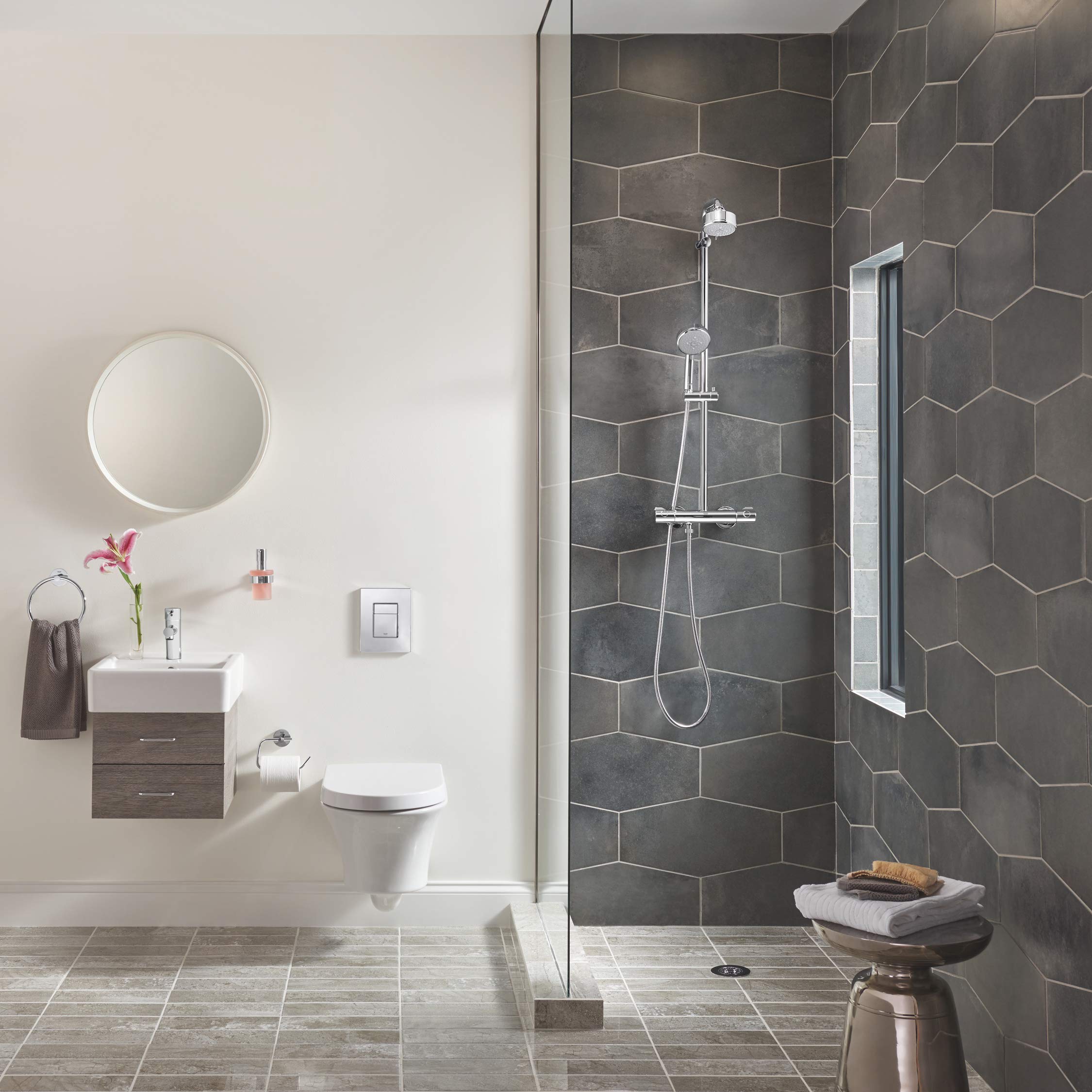 GROHE Essentials, WC Toilettenpapierhalter (einfache Montage ohne Bohren, klebbar, inklusive Abdeckung, pflegeleicht), chrom, 40367001