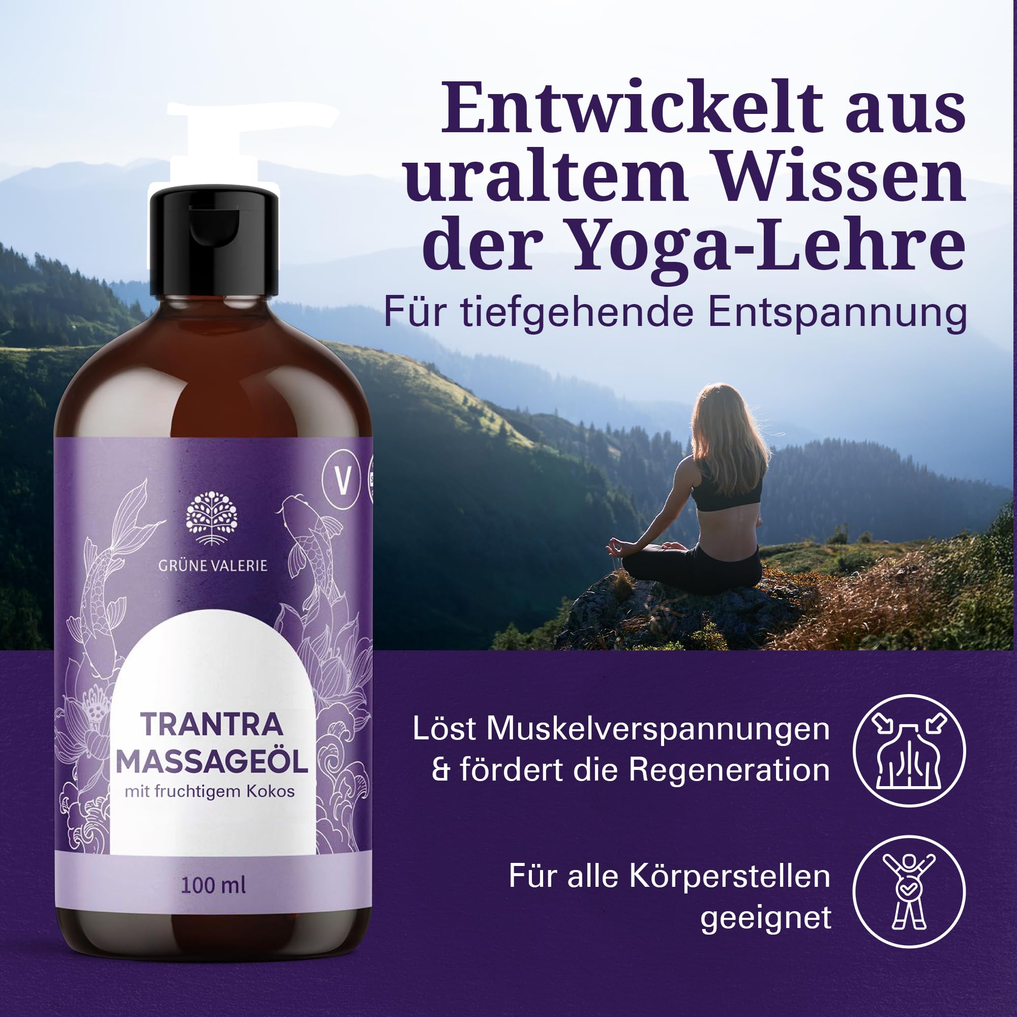 Grüne Valerie Massageöl mit fruchtigem Kokos 100 ml – Hochwertiges Öl für Muskelentspannung – Veganes Massageöl mit Vitamin E & C – Qualitätsöl aus Italien, dermatologisch getestet