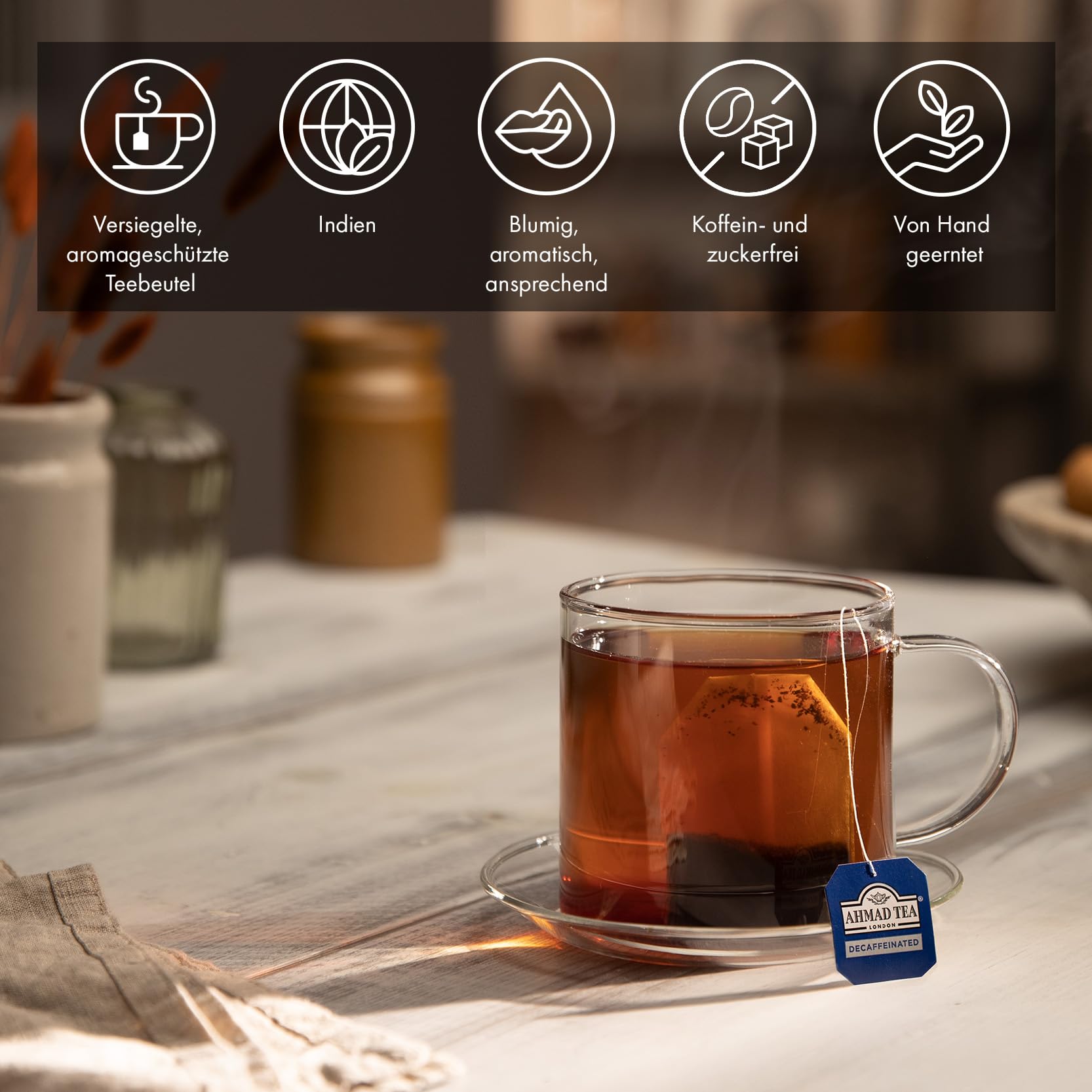 Ahmad Tea - Earl Grey ohne Koffein - Koffeinfreier Schwarztee mit Bergamotte - Einzeln Verpackte, Aromaversiegelte Teebeutel mit 2g Tee pro Portion - 100 Teebeutel mit Band
