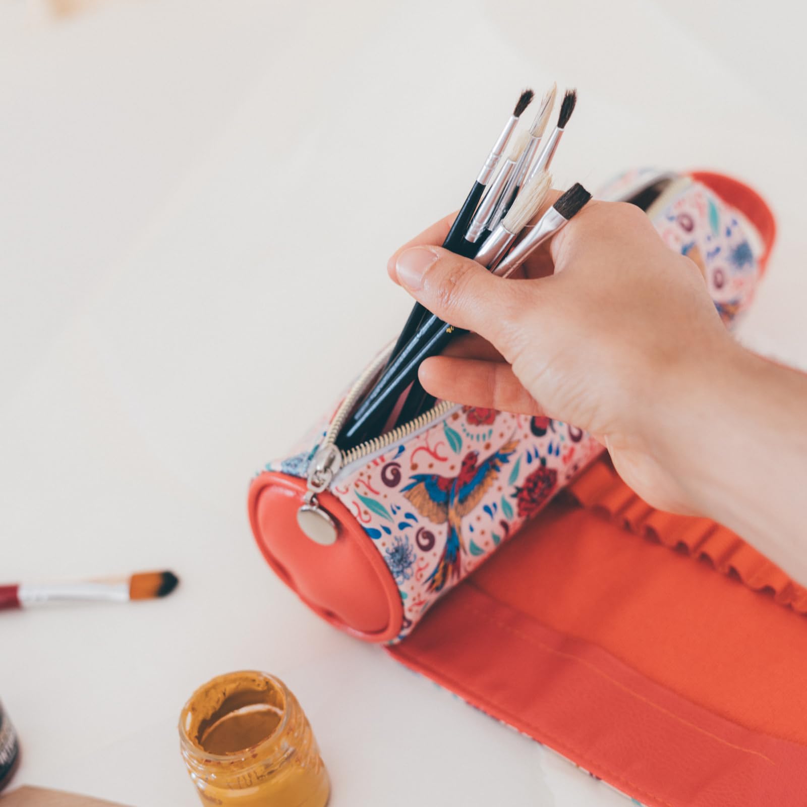 Das beschriebene Produkt ist ein Federmäppchen mit einem von Frida Kahlo inspirierten Design. Es ist robust und langlebig, aus PU-Material gefertigt und verfügt über ein Stoffinnere mit gummierten Fächern. Mit den Massen 20,5 x 8,5 x 8,5 cm eignet es sich ideal für die Organisation von Büro- und Schulmaterial oder Make-up. Es ist vielseitig einsetzbar, etwa als Kosmetiktasche oder Reiseetui, und hat ein grosses Fach sowie einen sicheren Reissverschluss. Perfekt für Schule, Büro oder unterwegs. Zudem eignet es sich hervorragend als Geschenk für verschiedene Anlässe. Die Produkte von GRUPO ERIK zeichnen sich durch hochwertige Materialien und offizielle Lizenzen aus.