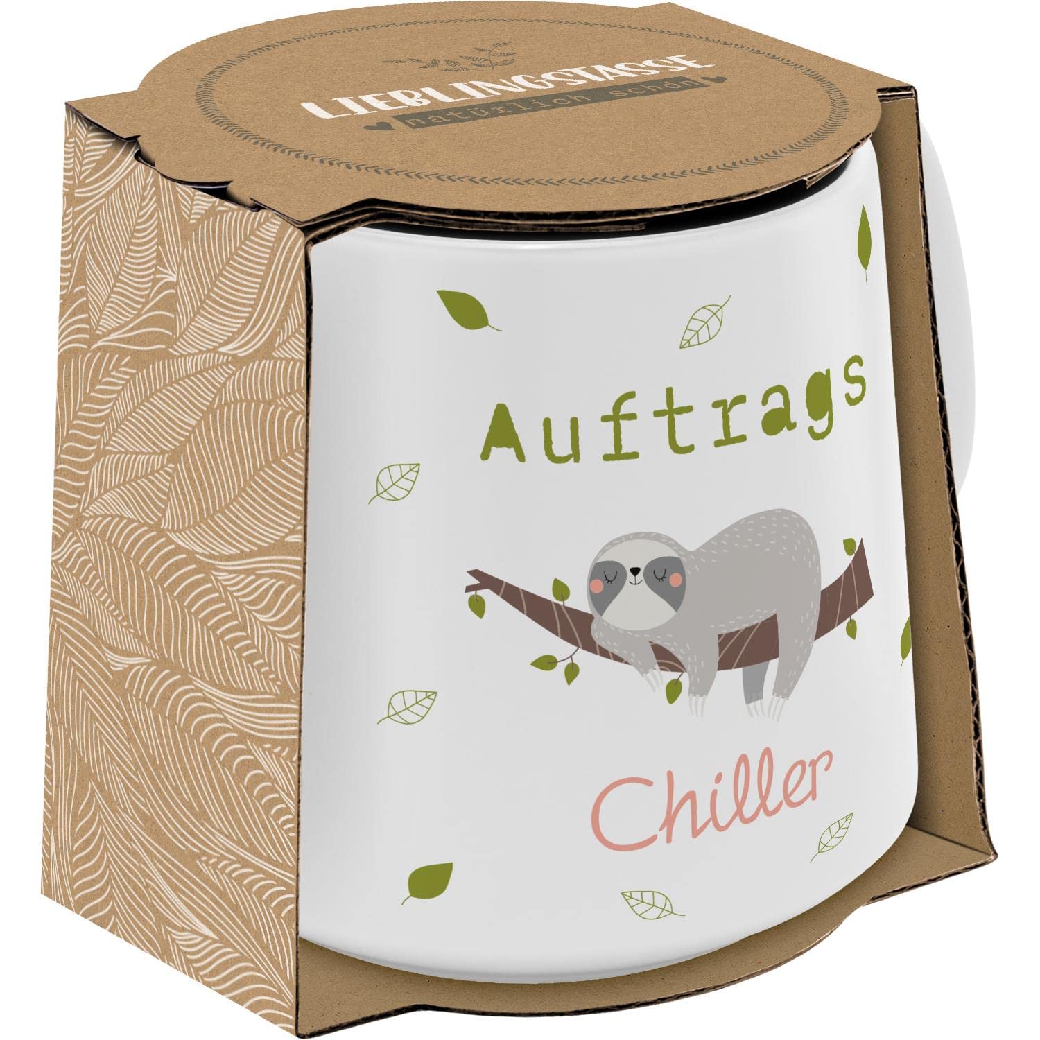 GRUSS & CO Tasse konisch "Auftragschiller" | Steinzeug, 43 cl, mehrfarbig | Geschenk Freunde, Faultier | 48445