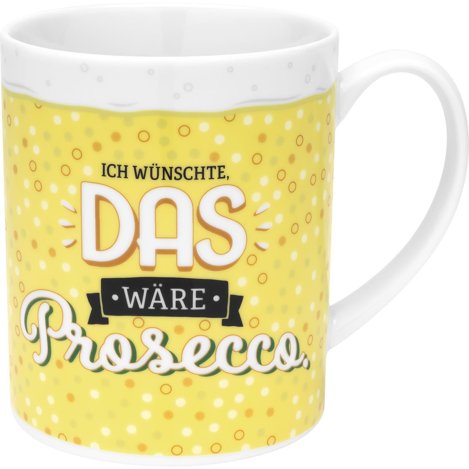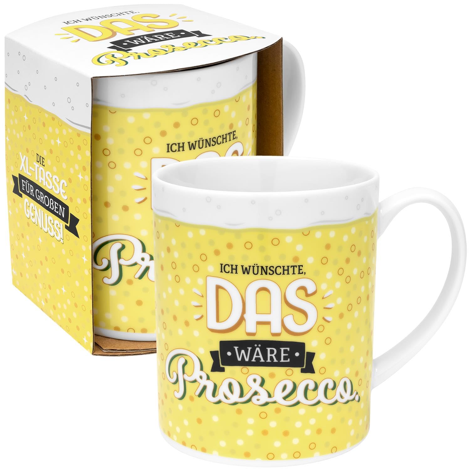 GRUSS & CO XL-Tasse Motiv Prosecco | lustige Kaffeetasse, Porzellan, grosser Becher 60 cl, gelb | Frauengeschenk, Partygeschenk | 48815