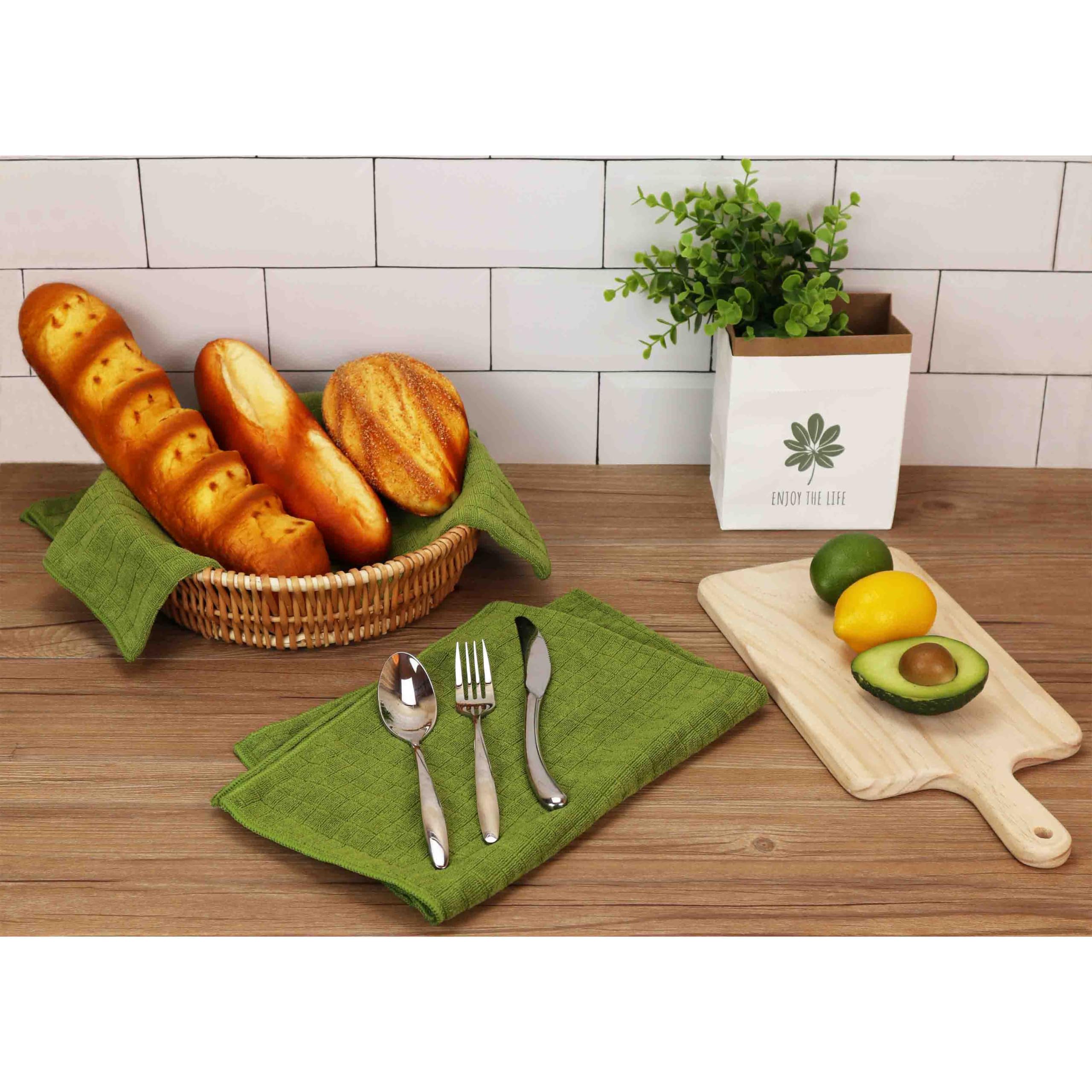 Gryeer 8er-Set Microfaser Geschirrtücher, weiche, super saugfähige und fussel freie Küchentücher, 45 x 65 cm (Gras Grün)