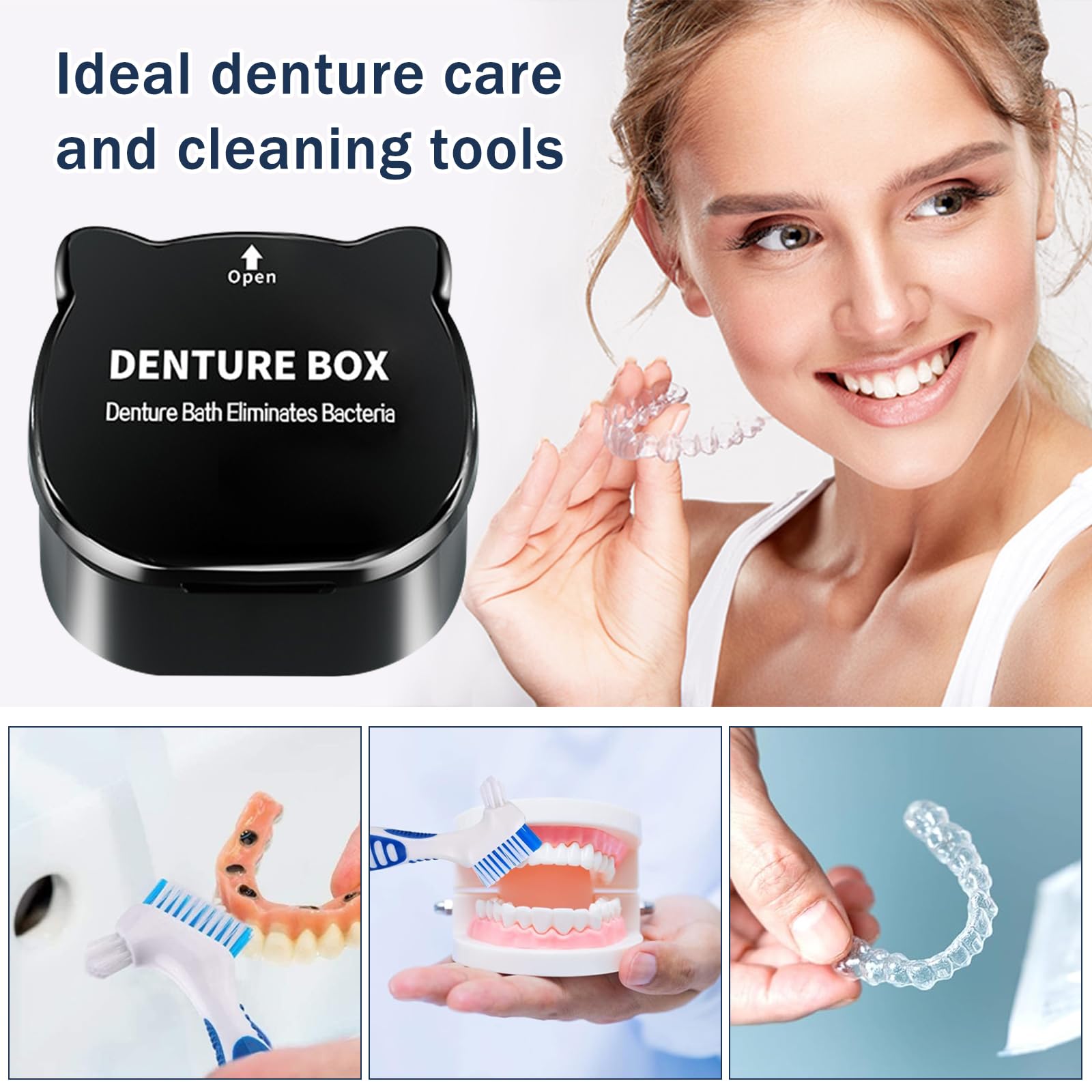 Prothese Box Zahnprothesenbox mit Sieb,Guador Zahnspangendose Prothesen Reinigerbürsten Spangendose Gebissdose Aufbewahrungsbox Prothesen Zahnprothese Box Zahnprothesenbecher