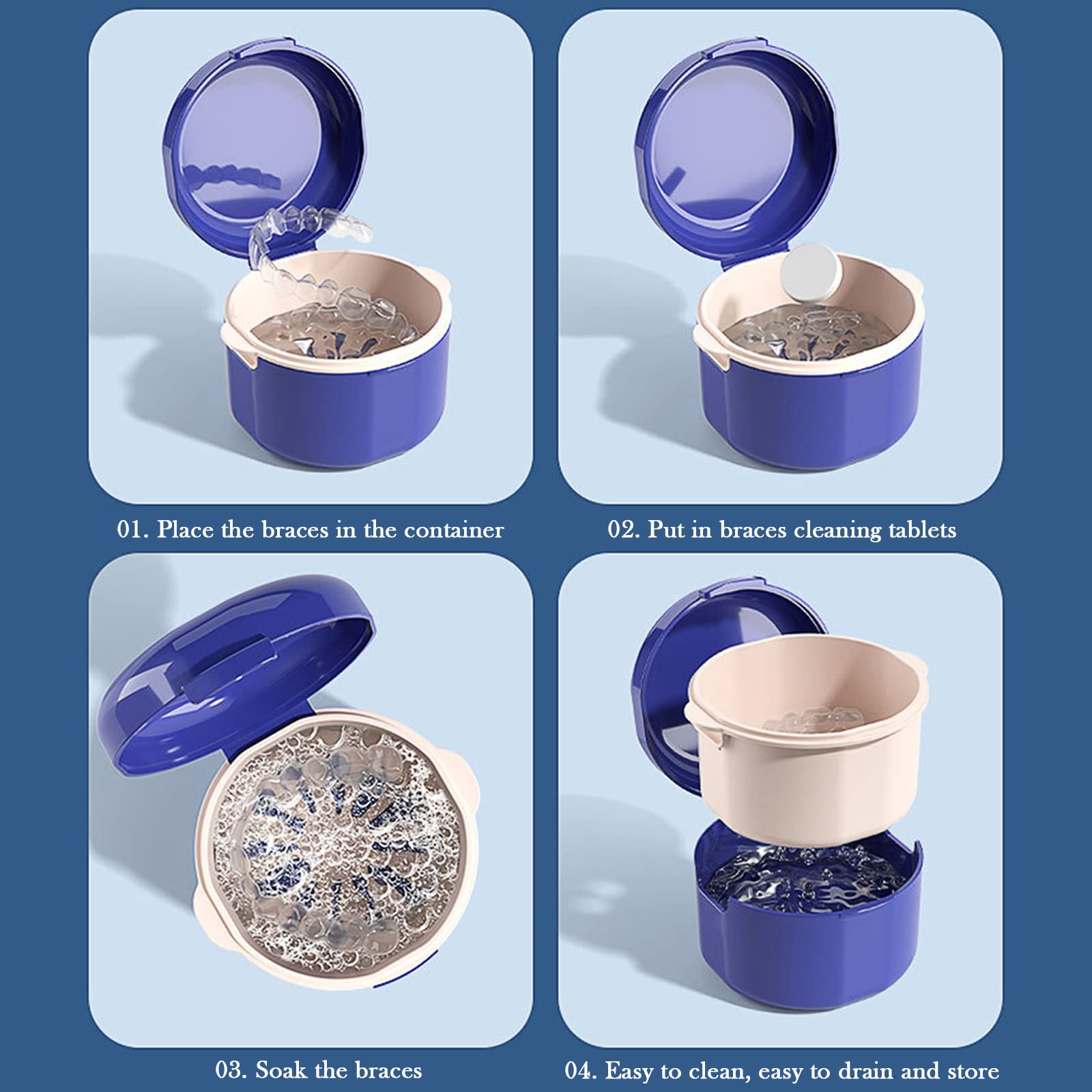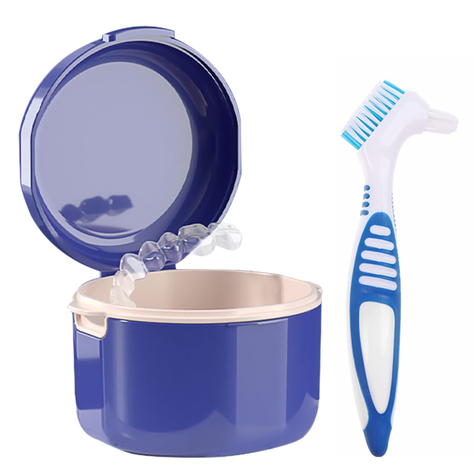 Guador Zahnspangendose Gebissdose Prothesen Behälter Prothesenbürste Set Zahnprothesenbecher Denture Box mit Prothesen Reinigerbürsten Prothese Bath Case Falsche Zähne Aufbewahrungsbox mit Spülkorb