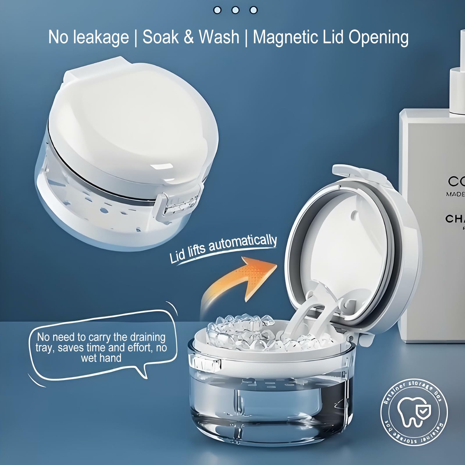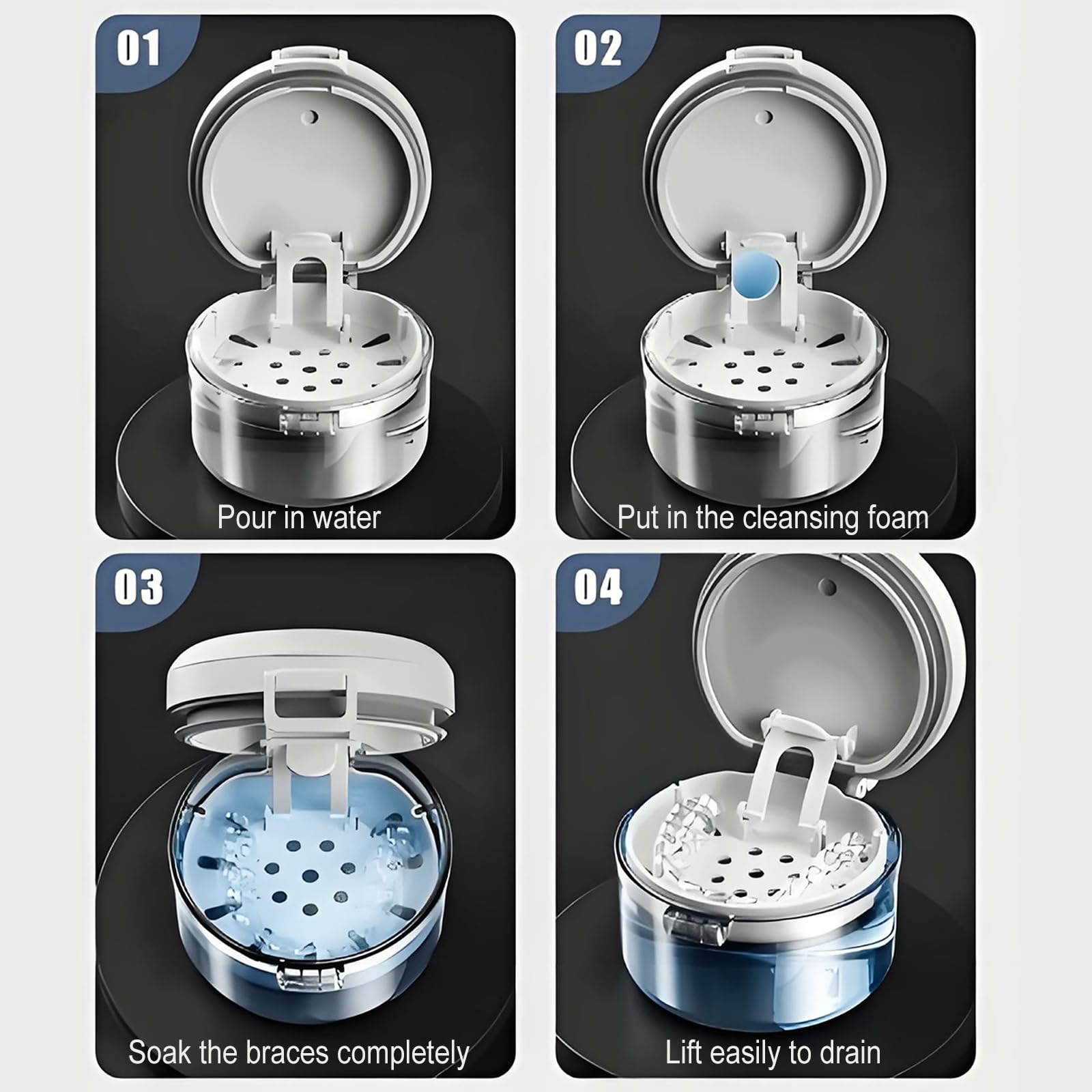 Guador Zahnspangendose Gebissdose Prothesen Behälter Prothesenbürste Set Zahnprothesenbecher Denture Box mit Prothesen Reinigerbürsten Prothese Bath Case Falsche Zähne Automatische Entleerung