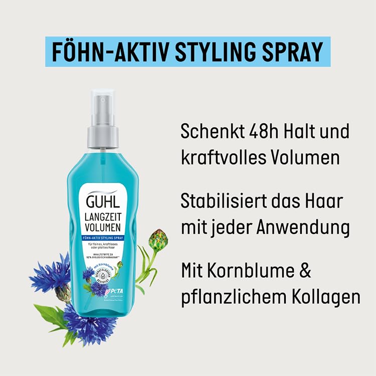 Guhl Föhn-Aktiv Styling Spray - Inhalt: 150 ml - Aus der Langzeit Volumen Serie - Haartyp: fein, kraftlos oder platt - Dermatologisch bestätigt (Packung mit 2)