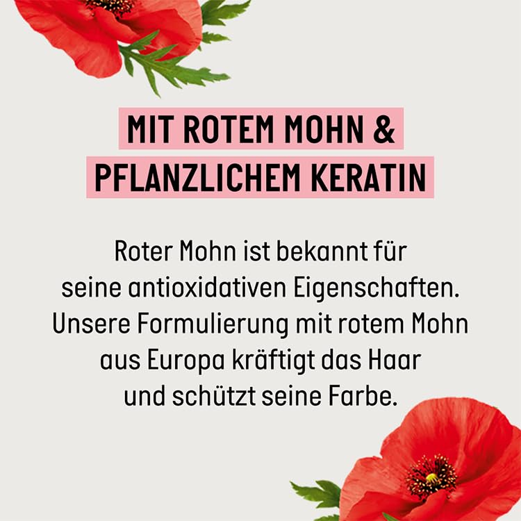 • [ ROTER MOHN & KERATIN ]: Roter Mohn wirkt antioxidativ und regenerierend - Pflanzliches Keratin unterstützt eine gesunde Haarstruktur
