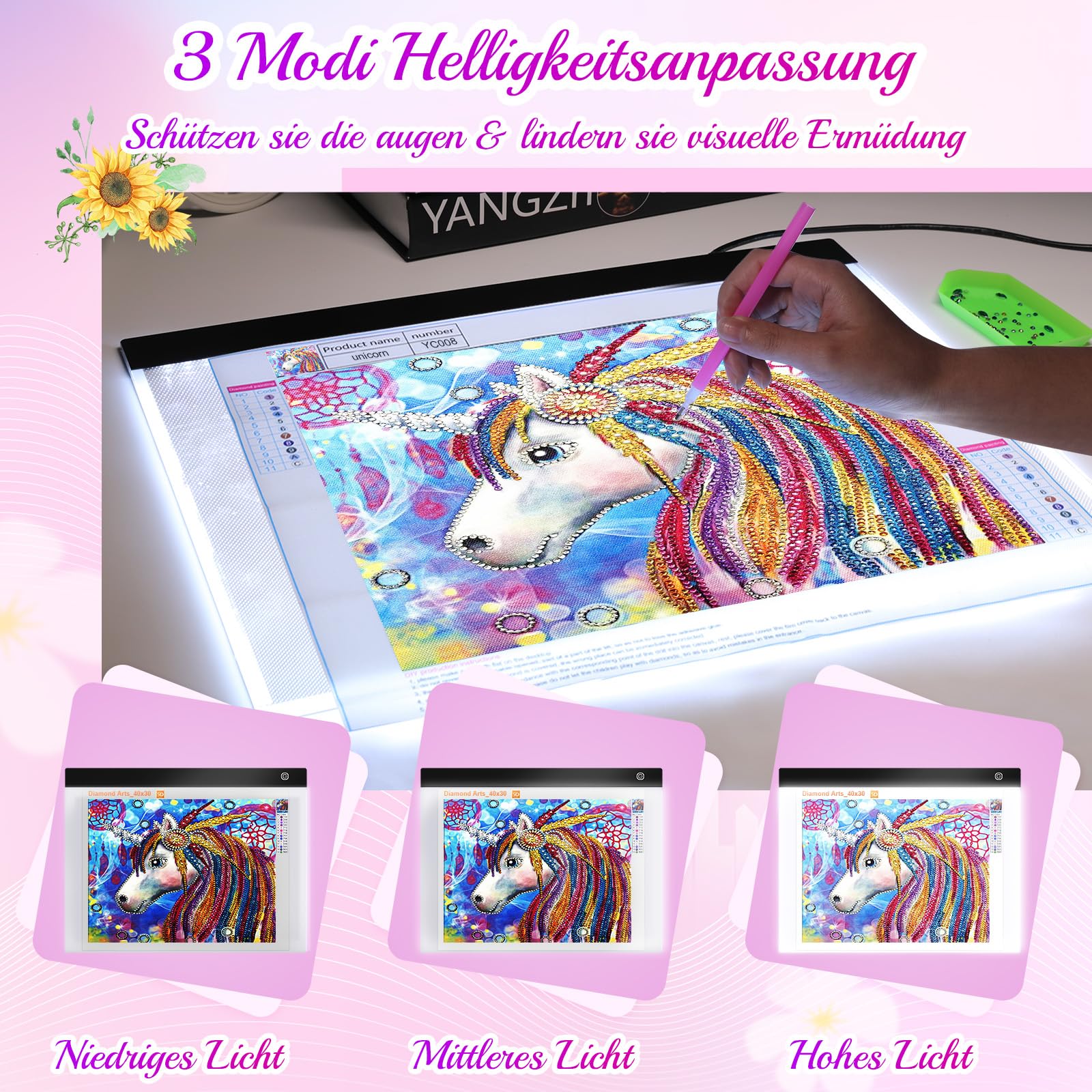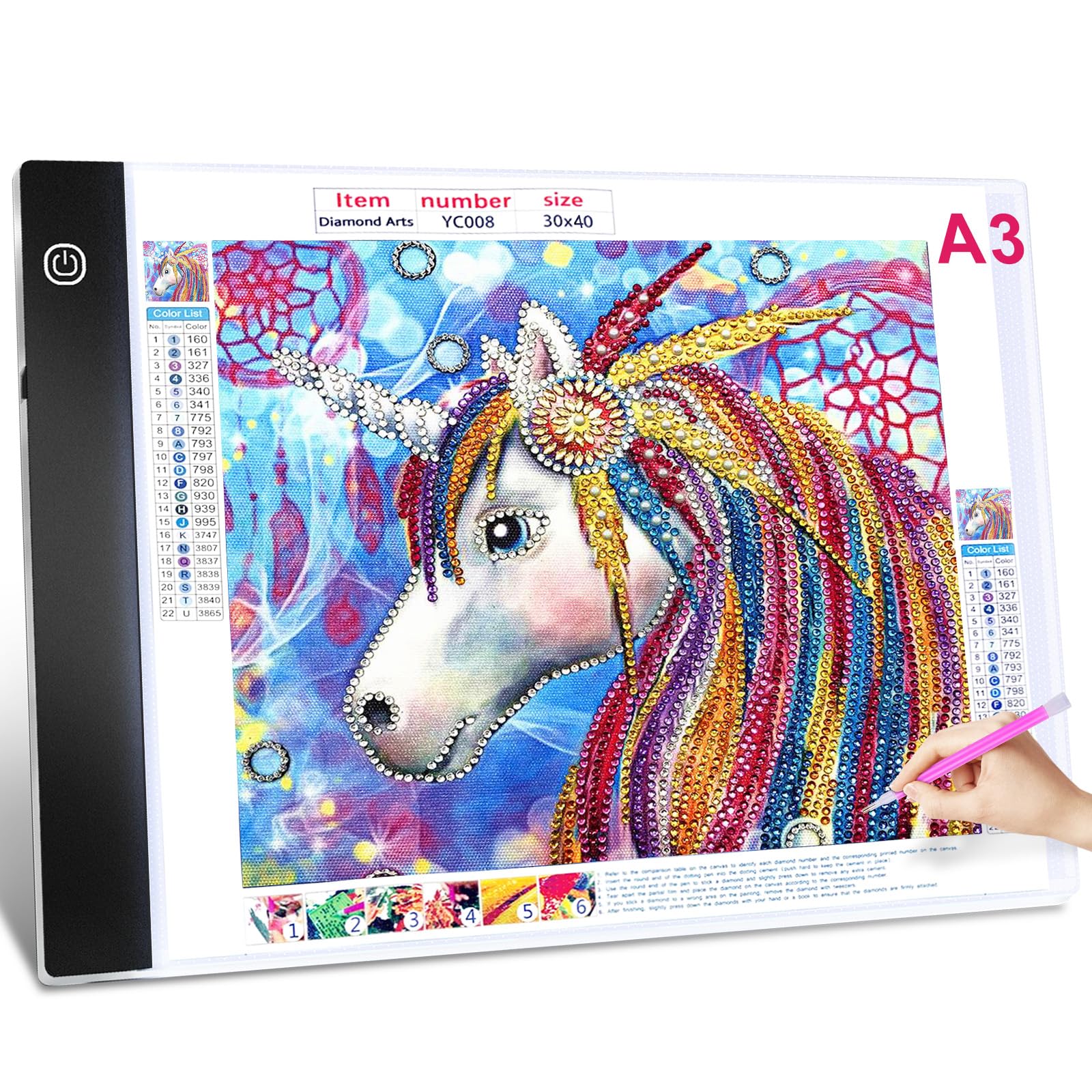• Diamond Painting Zubehör: Leuchttisch A3 ist besonders für 30 x 40 cm grosse 5D Diamantgemälde geeignet. So können Sie Zahlen und Buchstaben auch nachts klar erkennen und sich ganz Ihren Hobbys widmen.