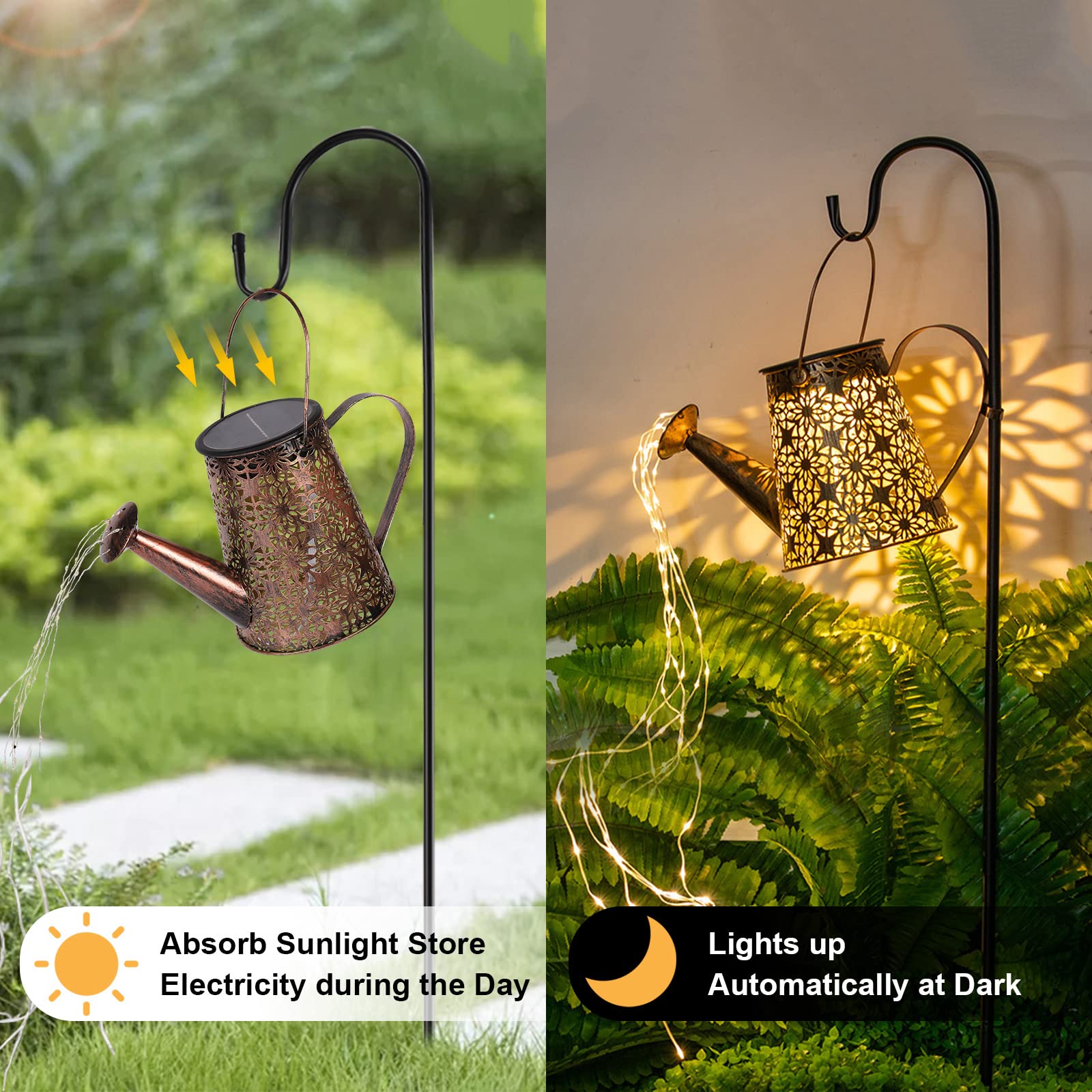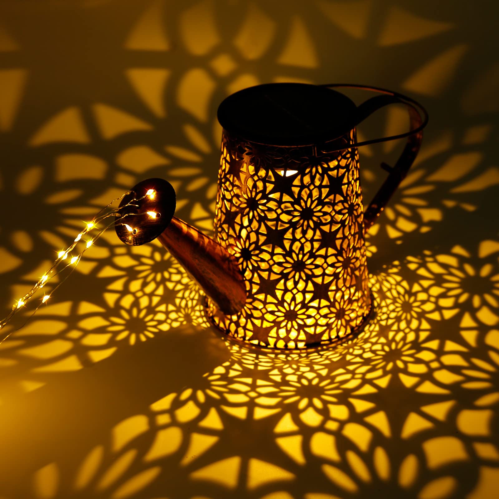 GuKKK Solar Giesskanne mit Solarlampen für Aussen, LED Aussen Solarlampen, Gartendeko Modern Stil, Lichterketten, Star Shower Garten Leuchten mit Halterung