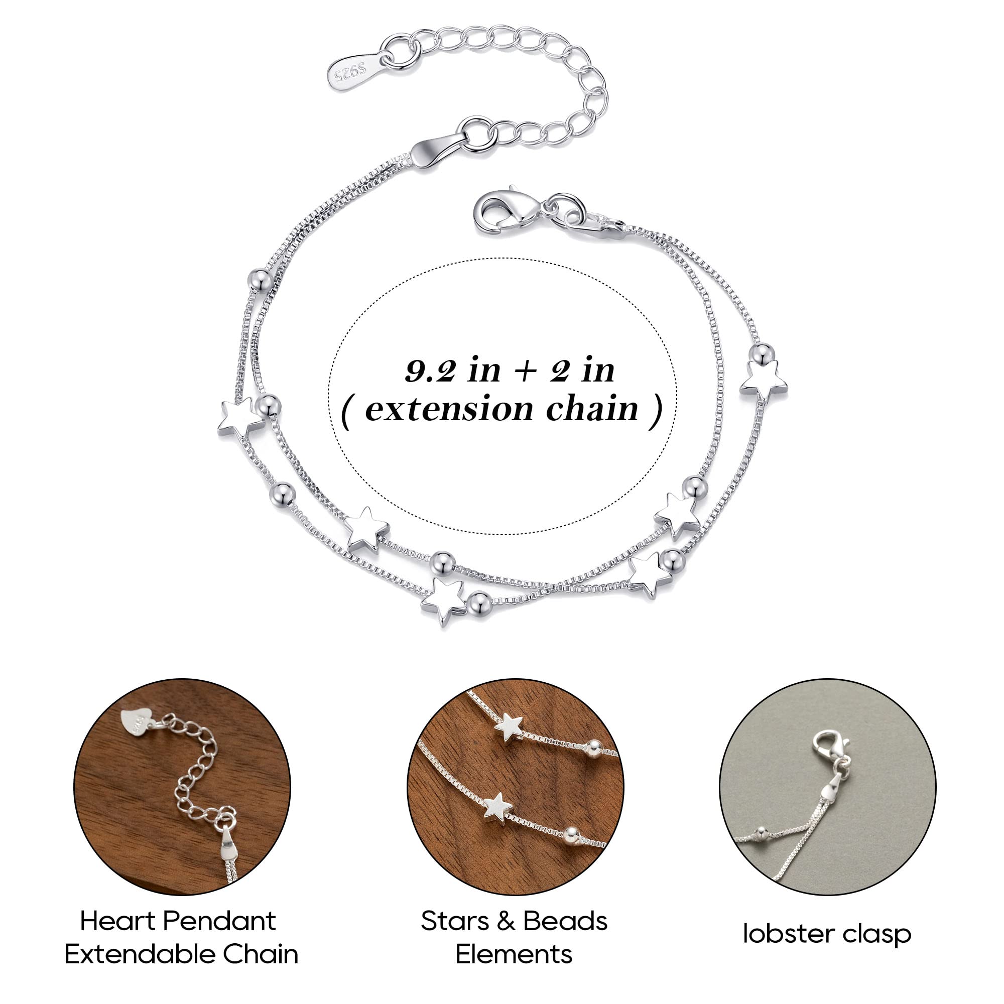 EXGOX Star Bead Armband aus Sterling Silber (925) Material, Grösse 9,2 Zoll mit einer zusätzlichen 2-Zoll Verlängerungskette. Dieses exquisite Armband kommt mit einer schönen Box Verpackung, macht es zu einem idealen Geschenk für Ihre Lieben.Erleben Sie die Eleganz dieses Sterling Silber Armbandes mit seinem komplizierten sternförmigen Perlendesign, das von unseren erfahrenen Handwerkern zur Perfektion gefertigt wurde. Das hochwertige Sterling Silber Material sorgt für Langlebigkeit und langanhaltenden Glanz.Erweitern Sie Ihre Schmuckkollektion mit dem EXGOX Star Armband, ein perfektes Accessoire für jeden Anlass. Bestellen Sie jetzt und erhalten Sie es in einer schön verpackten Box, bereit zu beeindrucken.