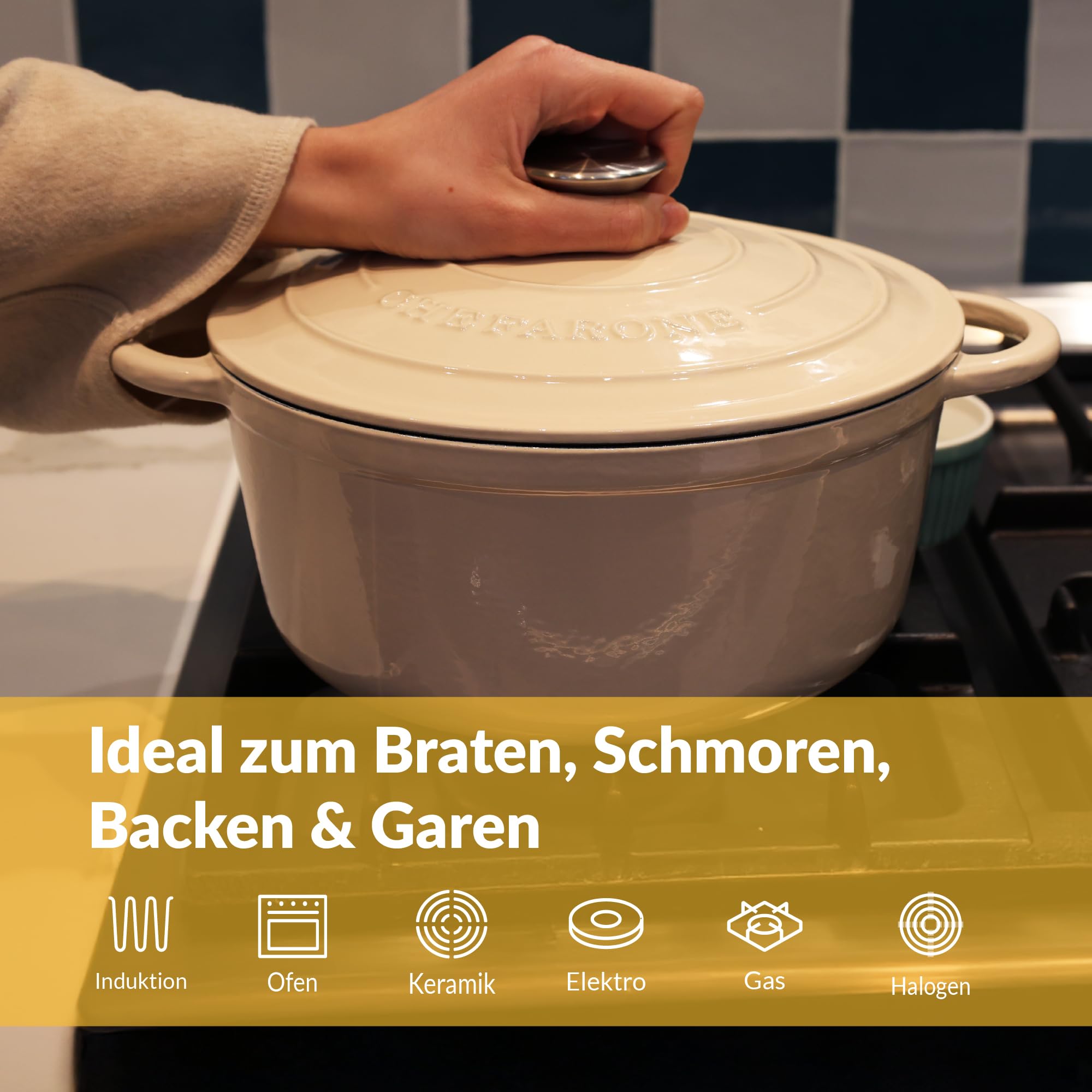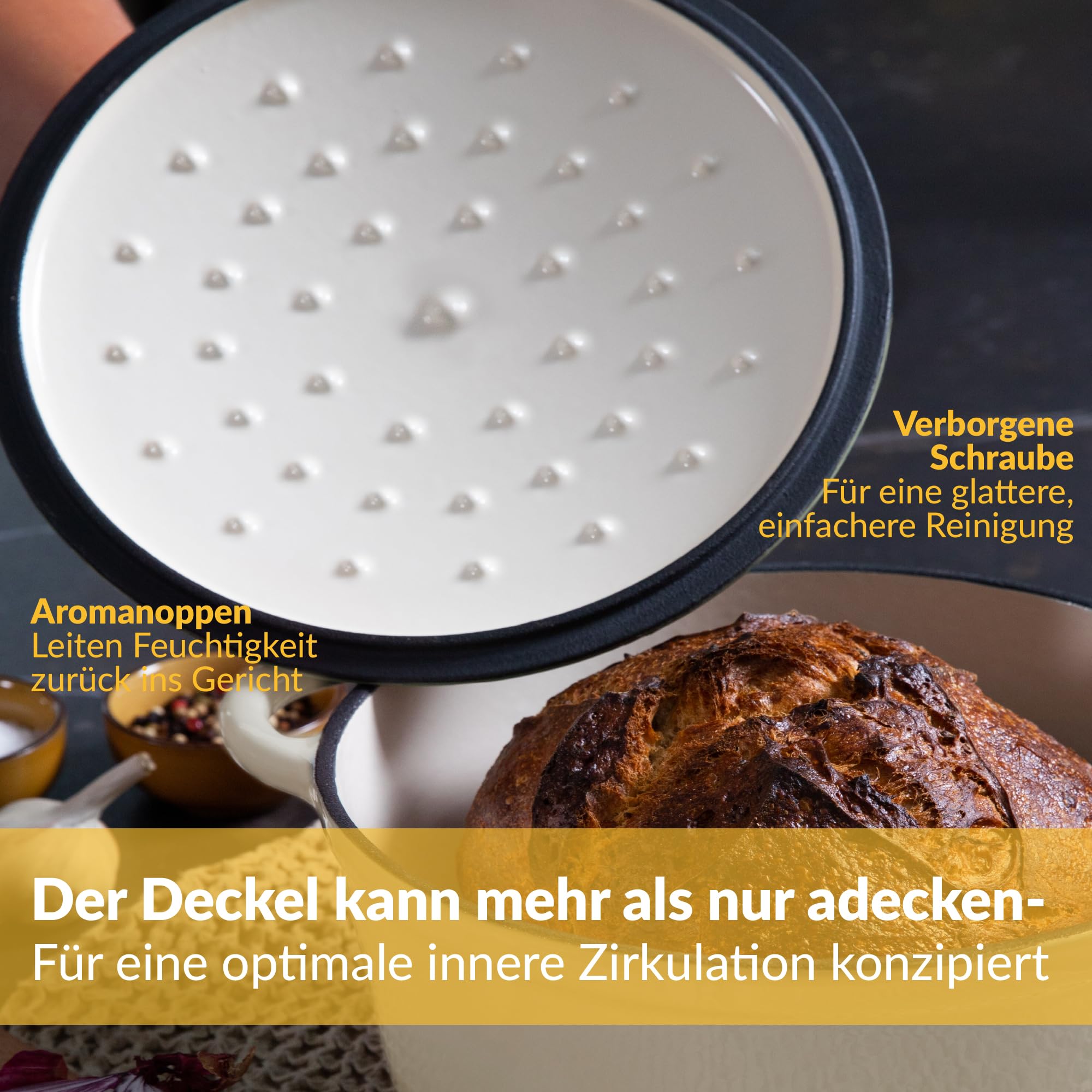 Gusseisen Topf Brot Backen 24 Cm, 3,5 L Schmortopf, Emailliert Zum Schmoren, und Braten, Brotbacktopf mit Deckel Induktion Bräter (Creme)