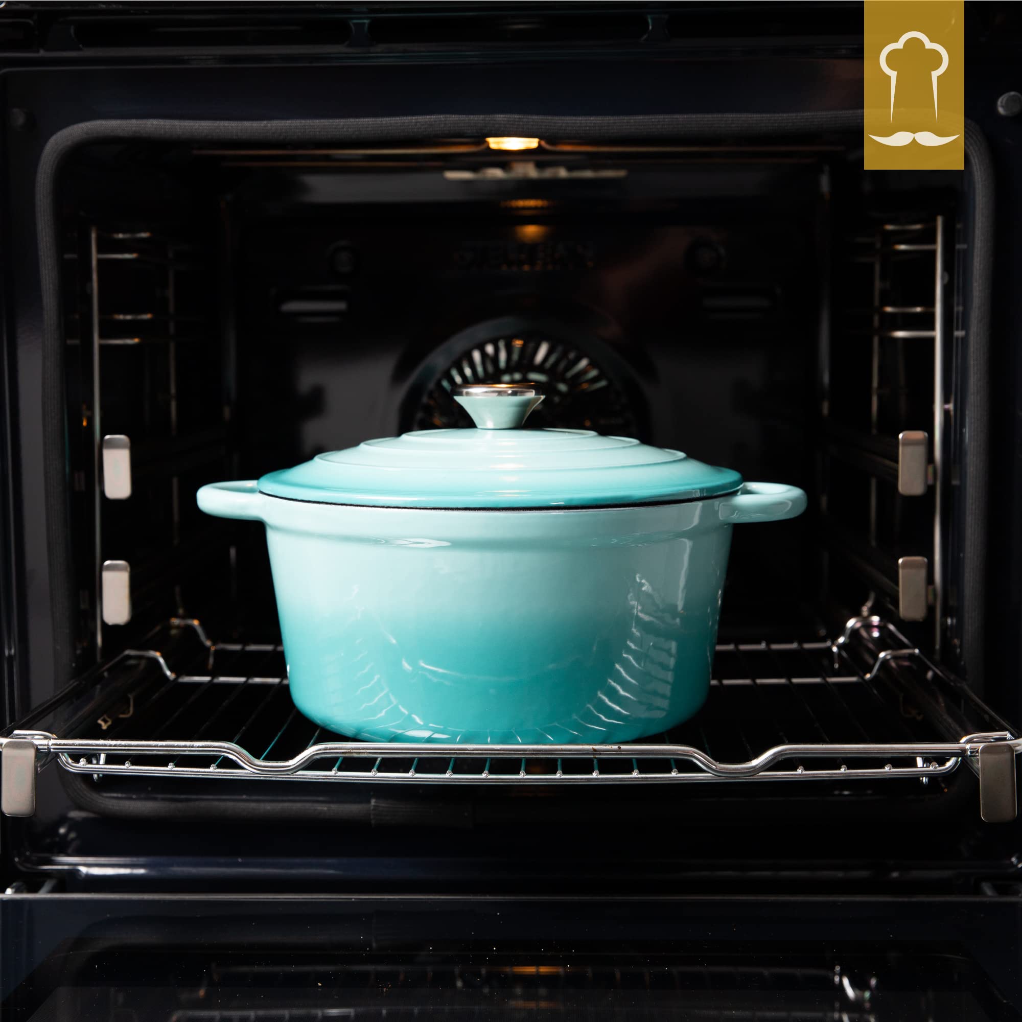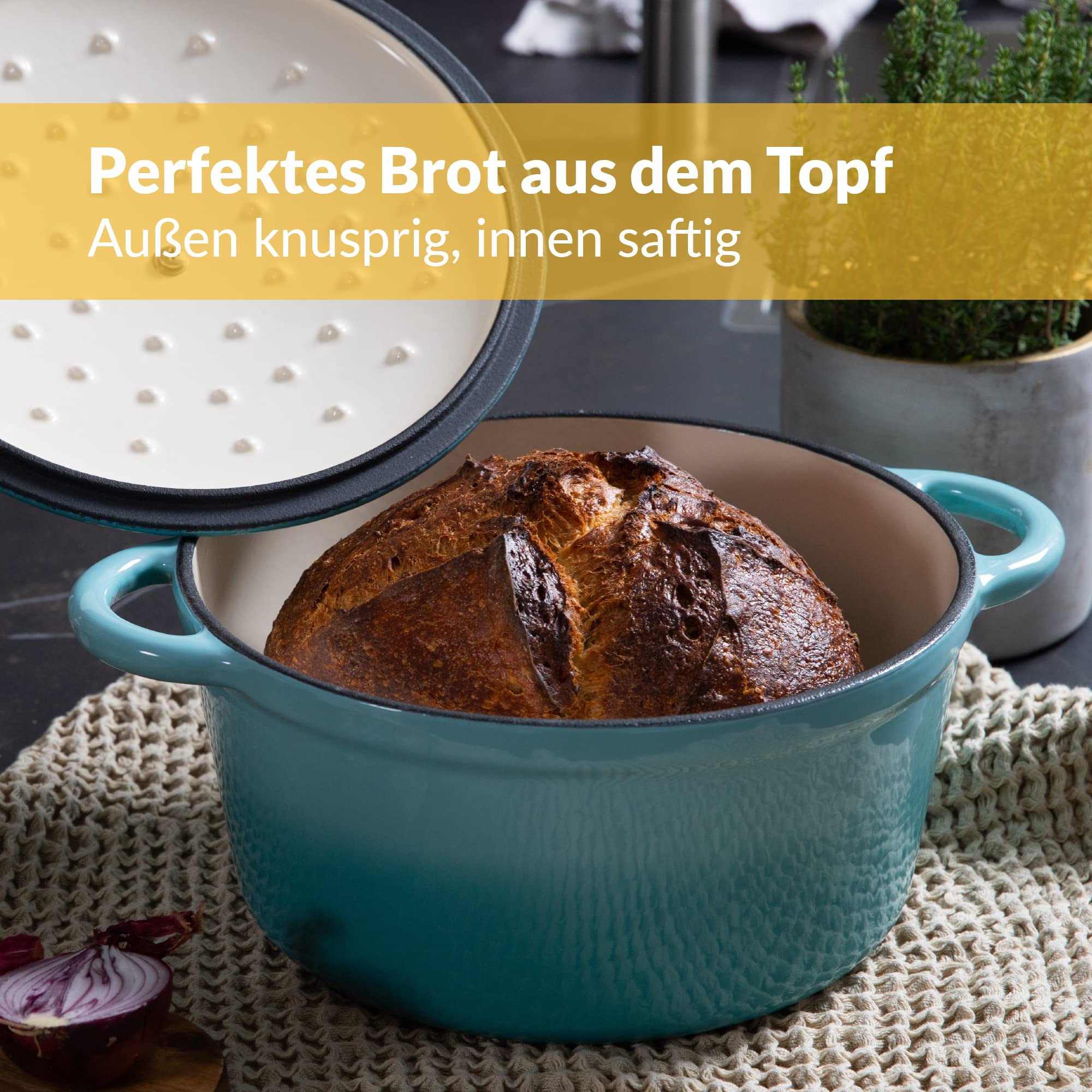 Chefarone Gusseisen Topf 24 cm, 3,5 L – Schmortopf emailliert mit Deckel für Brot backen, Schmoren & Braten – Brotbacktopf Induktion