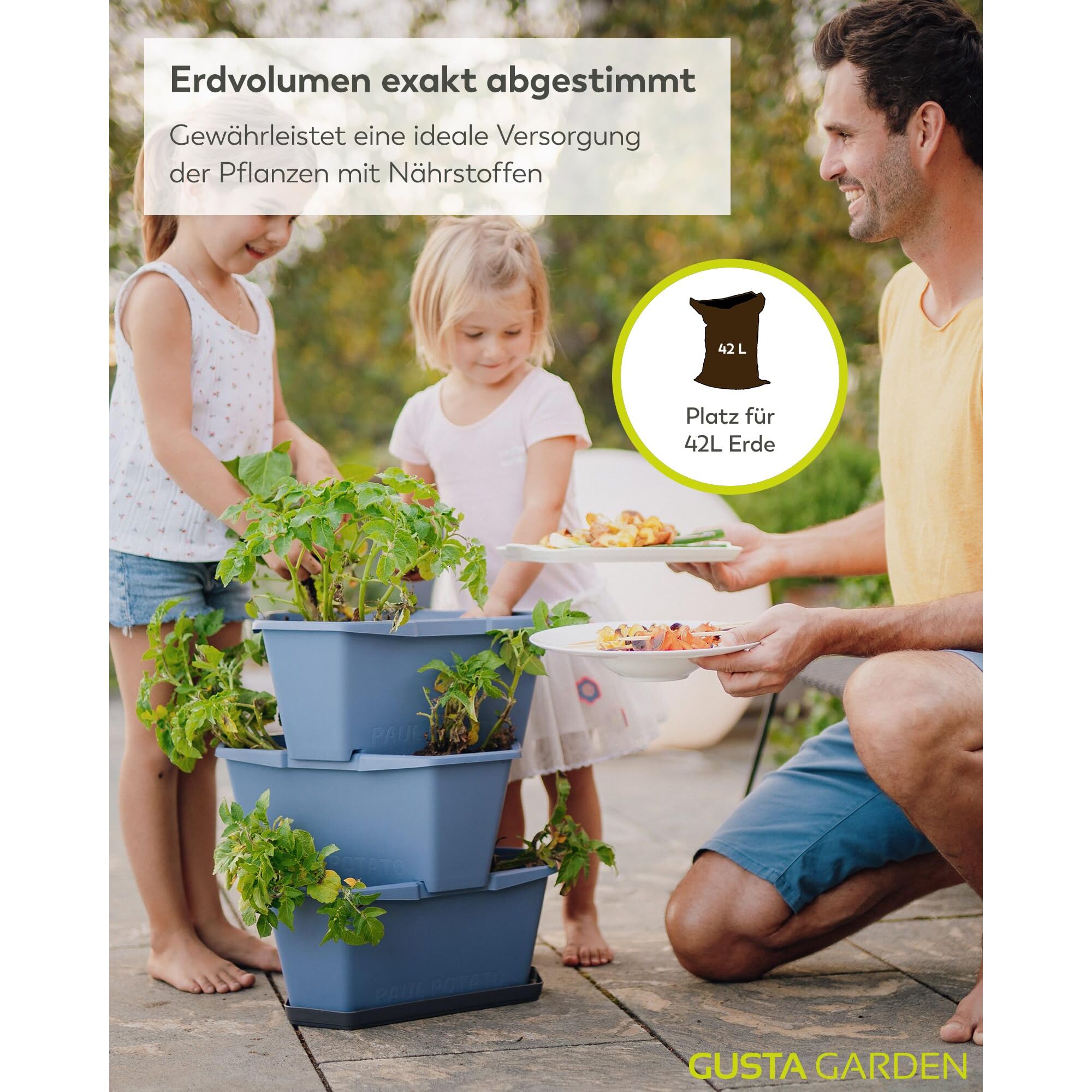 GUSTA GARDEN Paul Potato Kartoffelturm 3 Etagen Blau - Hochbeet Turm Kartoffeln - Garten & Balkon - Schädlingsschutz - 0,2m² - 56L Erdvolumen