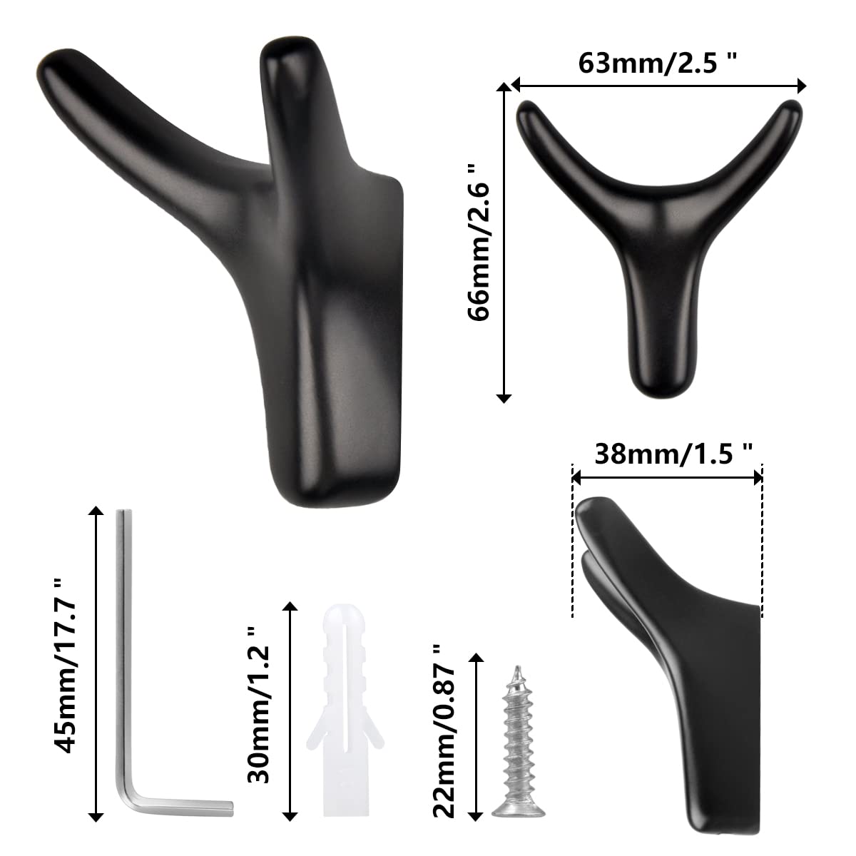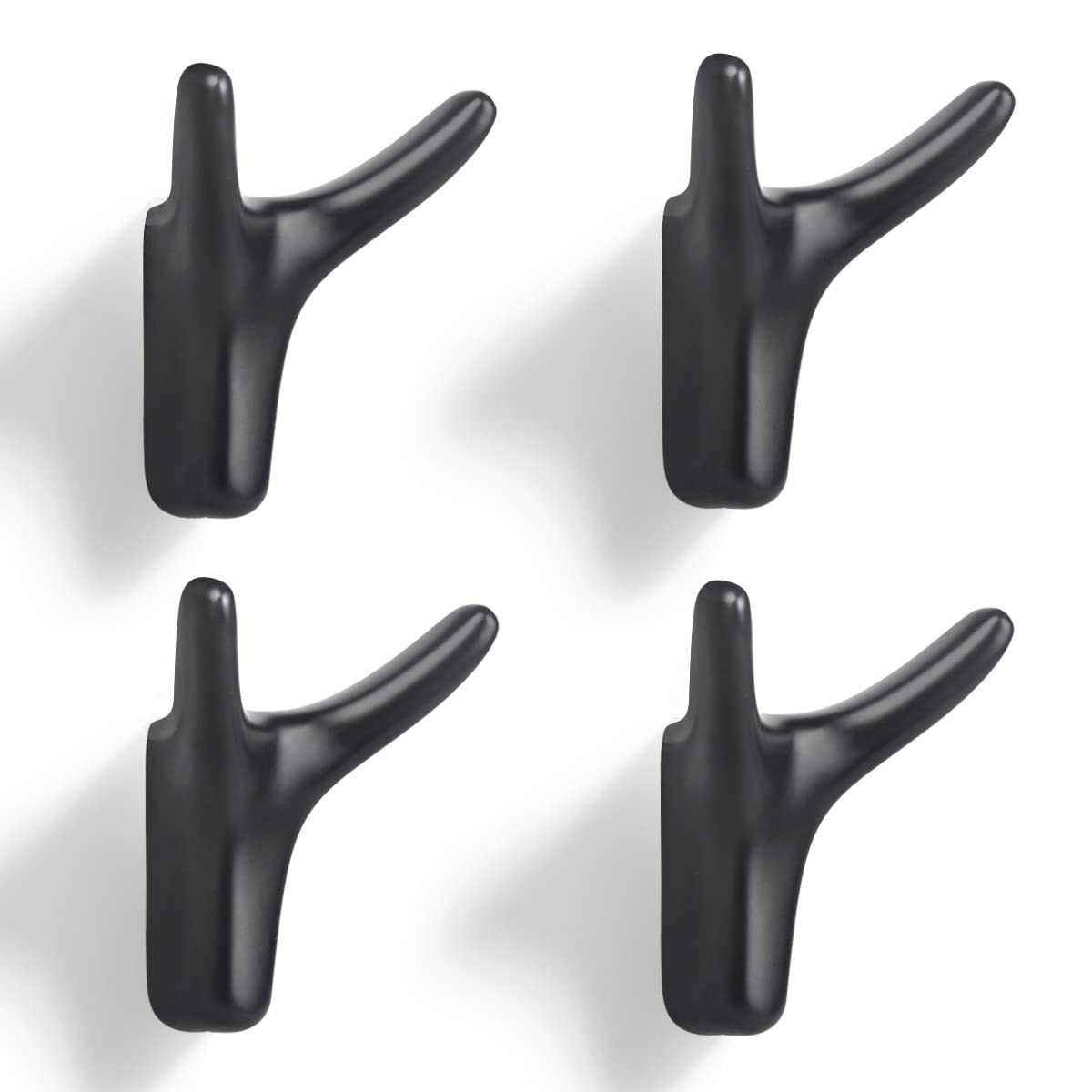 GUWINA 4 Stück Doppelt Wandhaken, Garderobenhaken Wandmontage Kleiderhaken Zinklegierung Handtuchhaken Ideal für Badezimmer Küche Schlafzimmer Mehrzweckhaken Mantelhaken mit Schrauben (Mattschwarz)