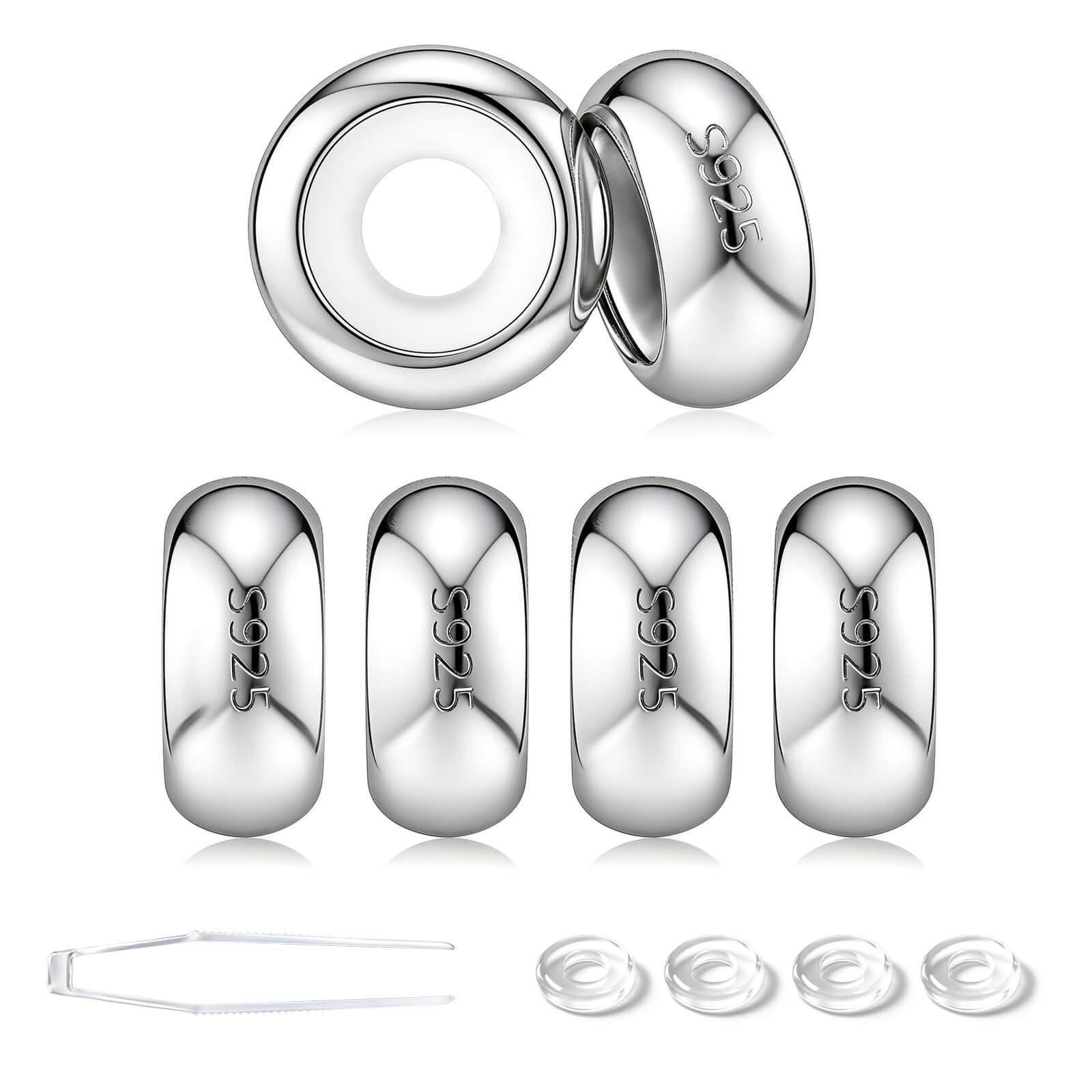 GW Charms Stopper 925 Sterling Silber für Armband mit Gummi Clip Stopper Charms für Bead Charm Armband Anhänger Spacer