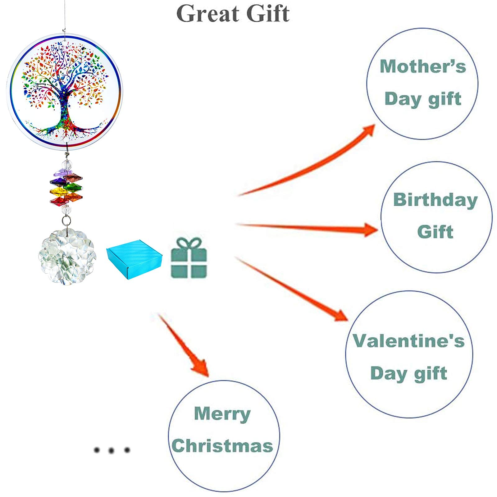 H&D HYALINE & DORA Kristall Regenbogen Sonnenfänger Glasbaum Leben Ornamente, Hängende Chakra Perlen Anhänger für Fenster