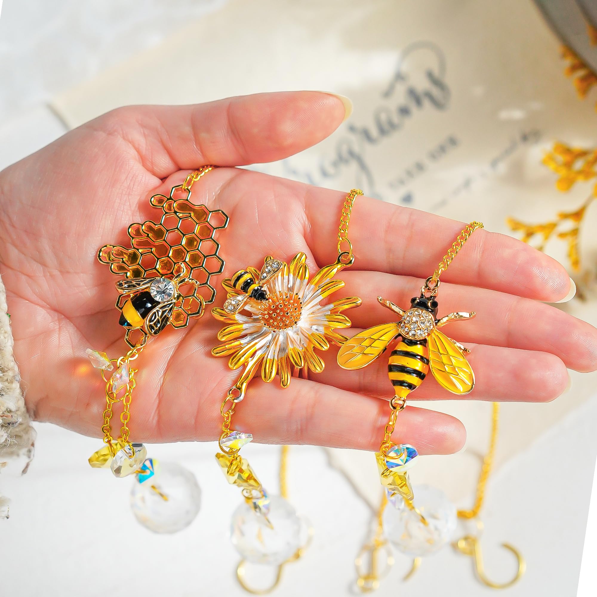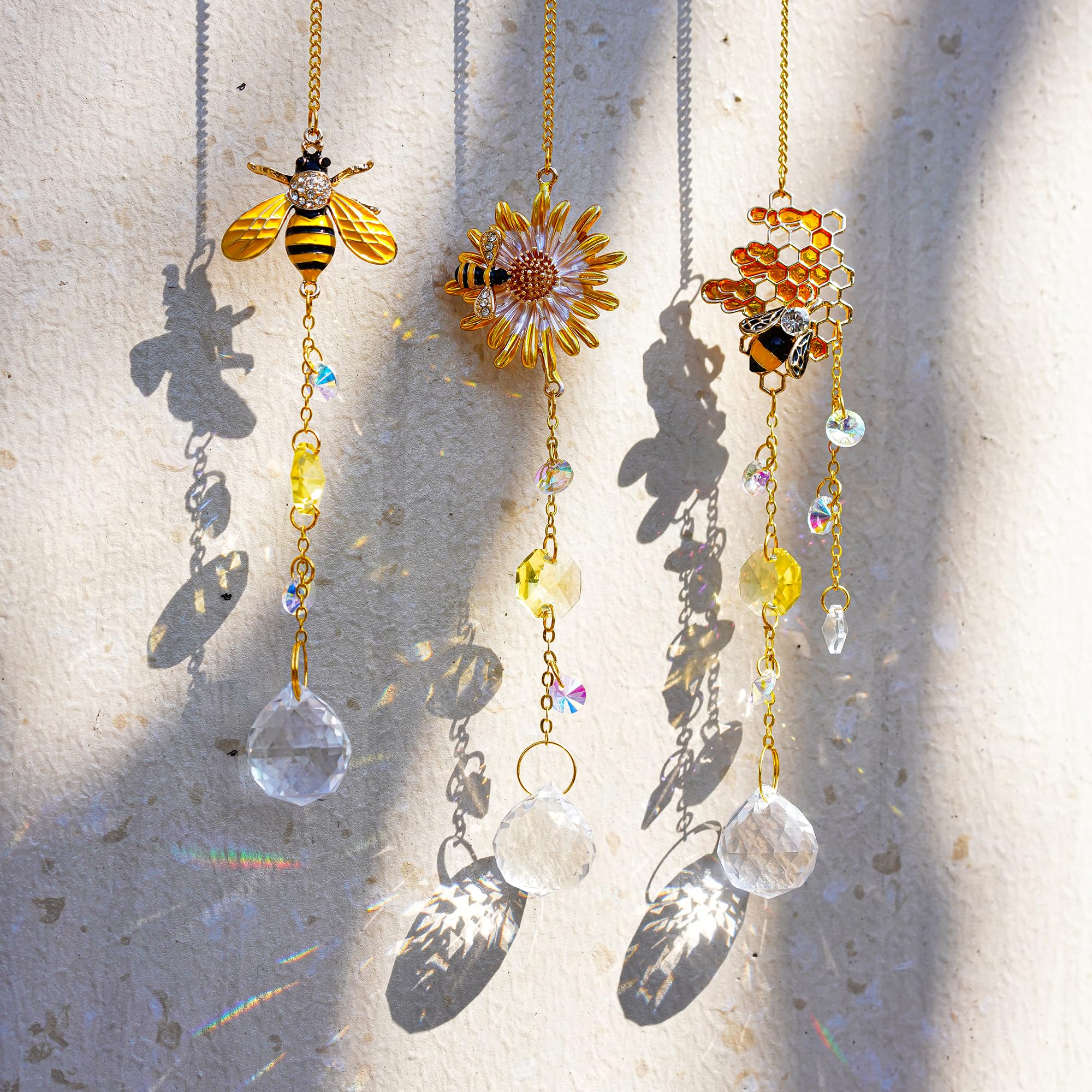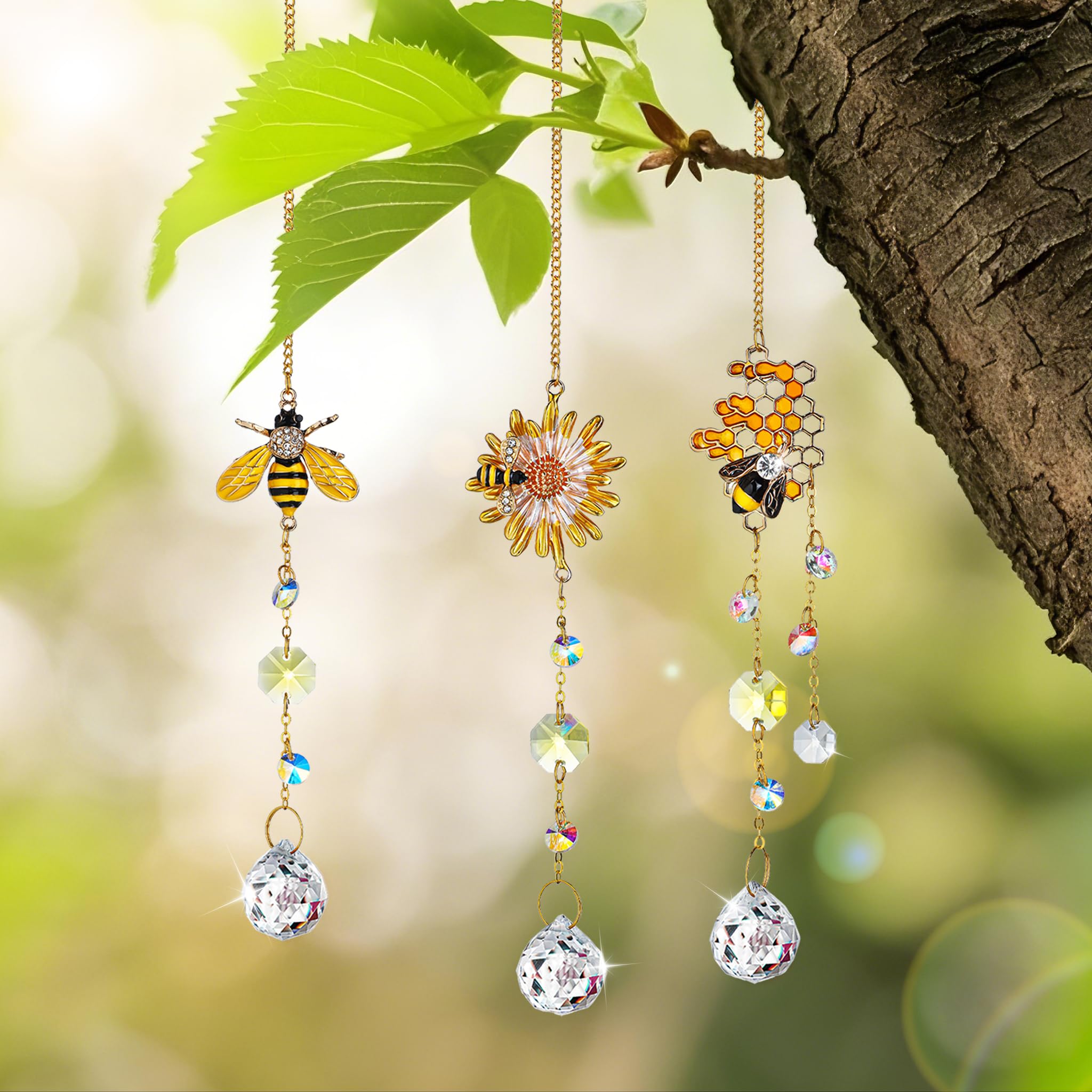 - Perfekte Grösse für vielseitige Verwendung: Enthält 3 x Kristall-Sonnenfänger mit einer Grösse von ca. 33 cm – 34,3 cm einschliesslich der Metallkette. Dieser Honigbienen-Sonnenfänger ist ideal für Innen- und Aussenbereiche. Hängen Sie es an Ihr Fenster, Veranda, Garten oder Haustür, um Ihre Einrichtung zu verschönern