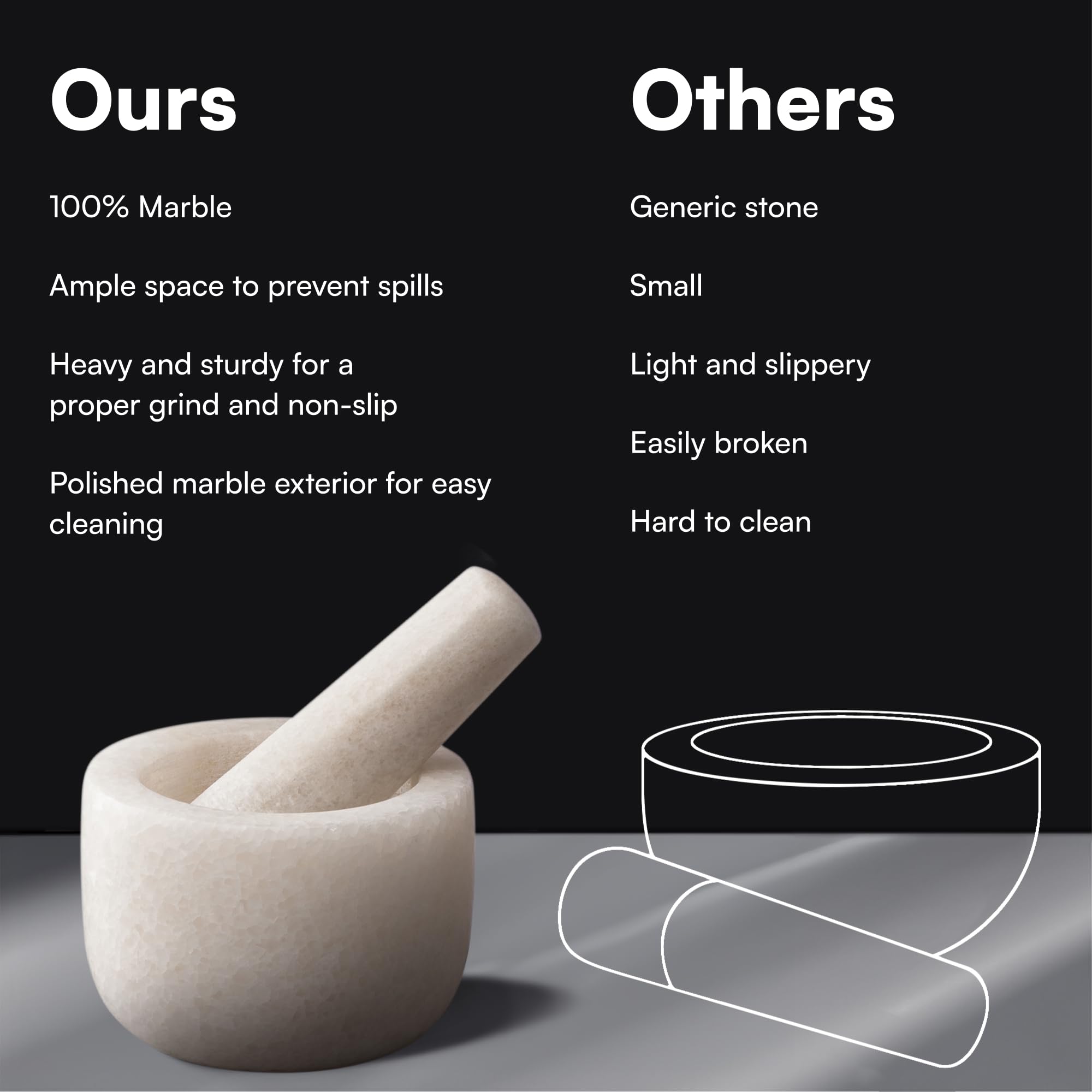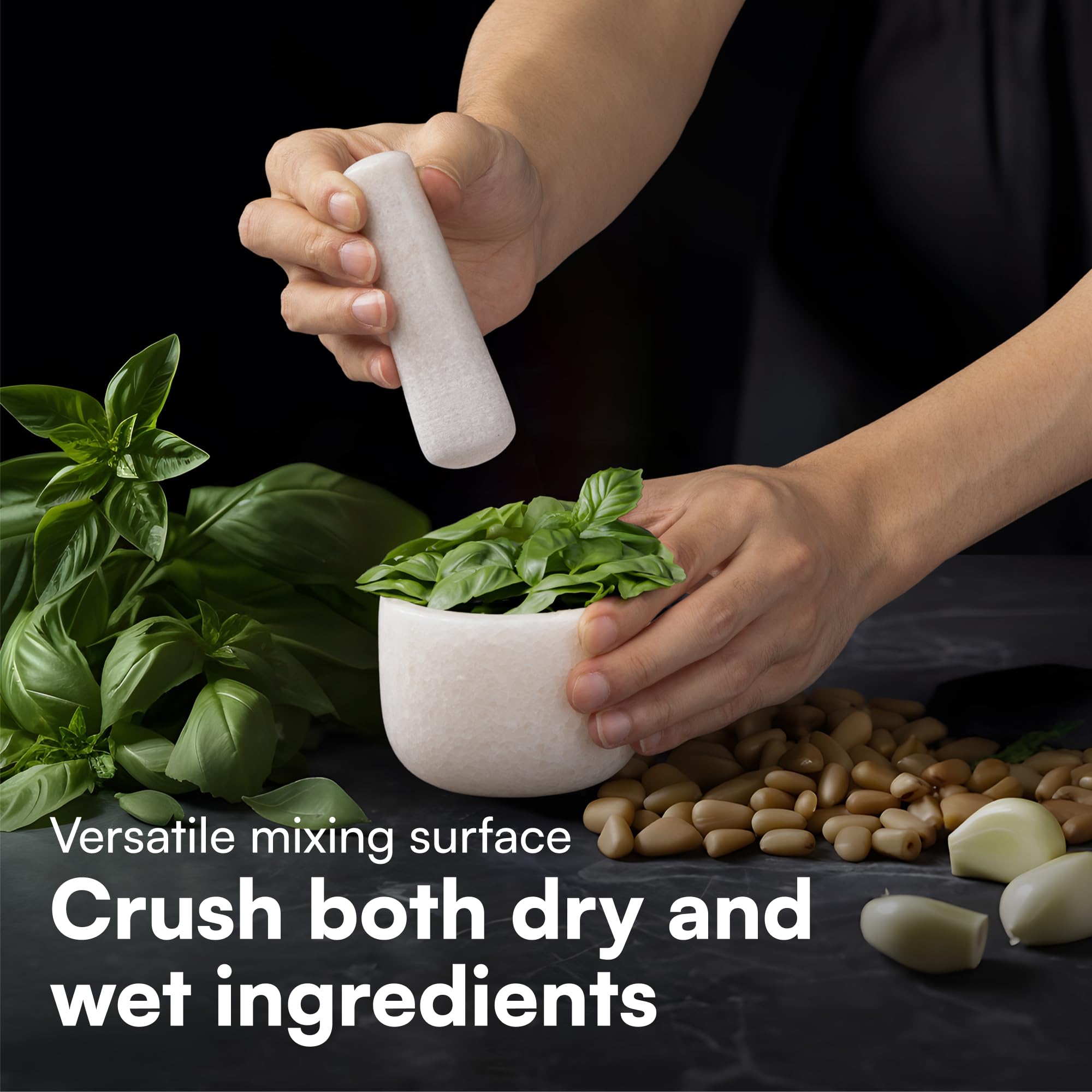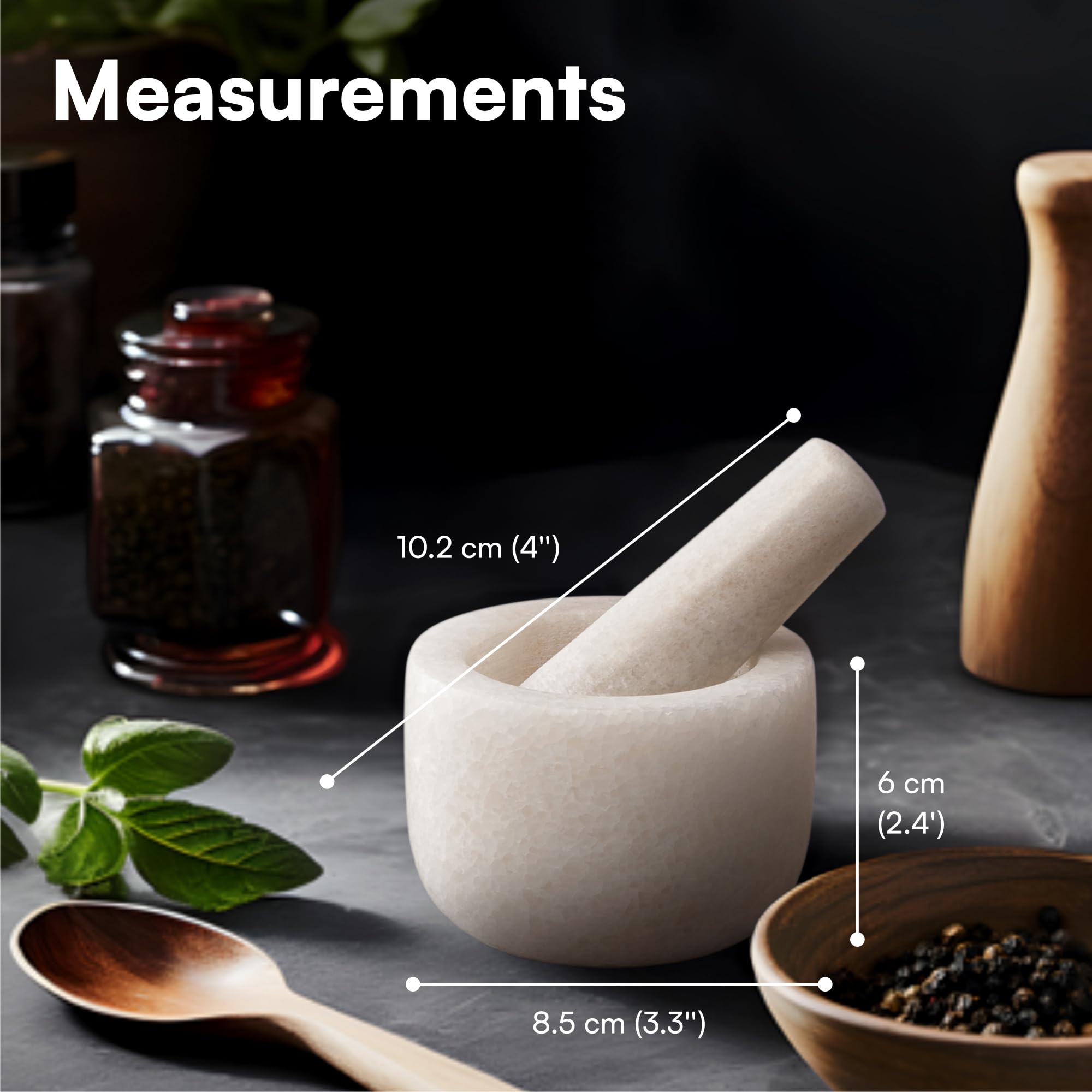 H&S Mörser mit Stössel aus Marmor klein - ⌀ 8,5 cm - Stabiler Tablettenmörser - Schützt Arbeitsplatten - Einfache Reinigung - Zum Mahlen von Gewürzen Nüssen Medikamenten