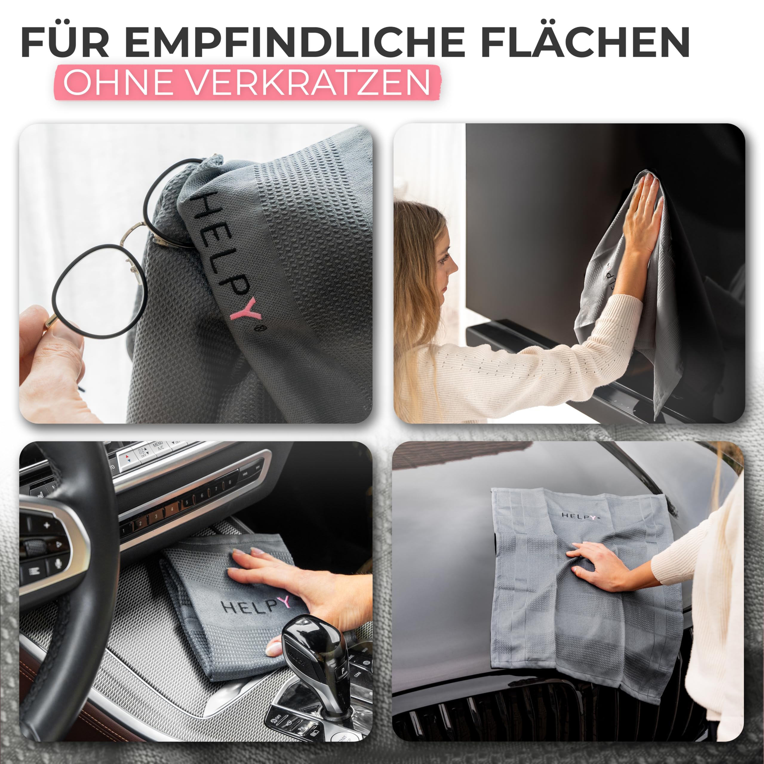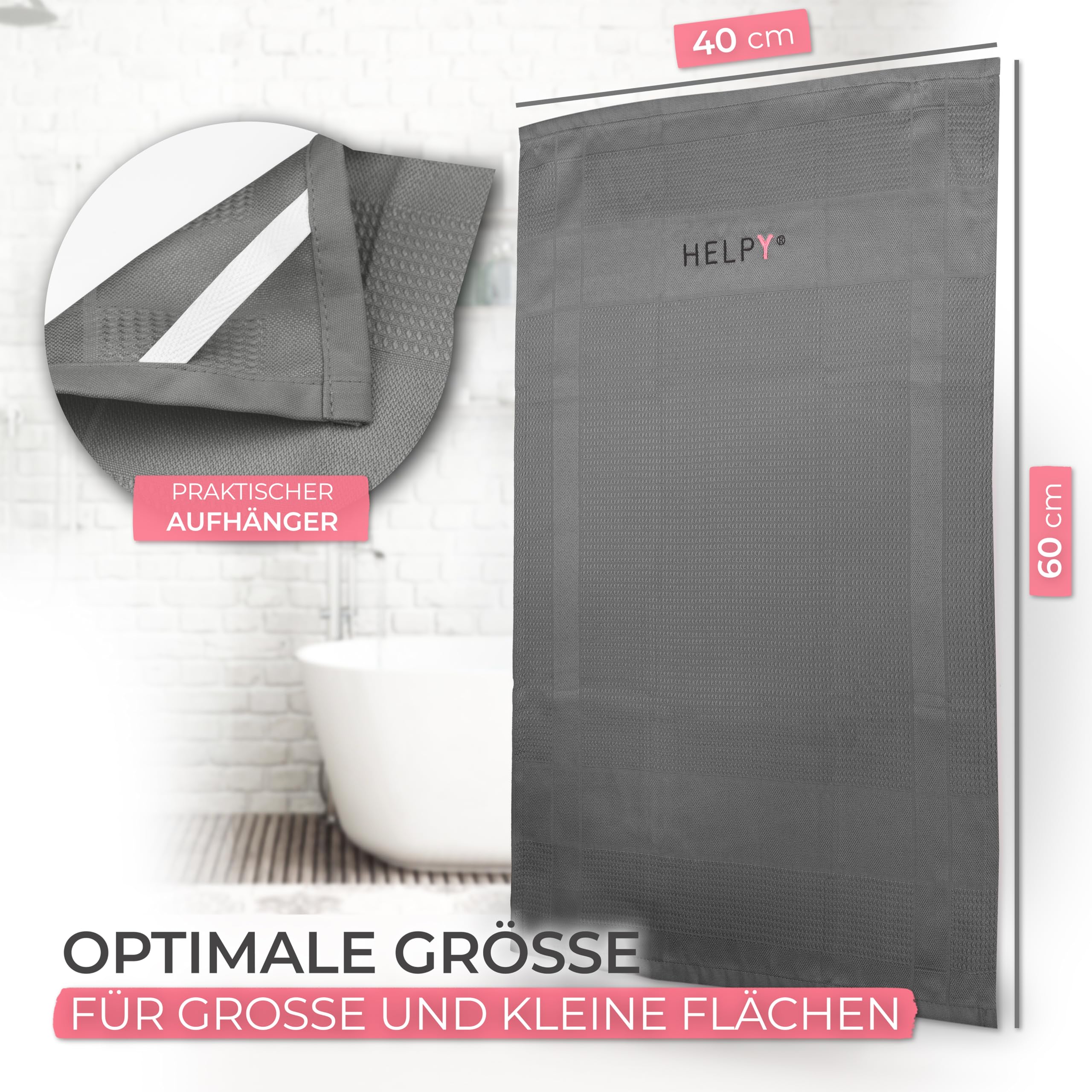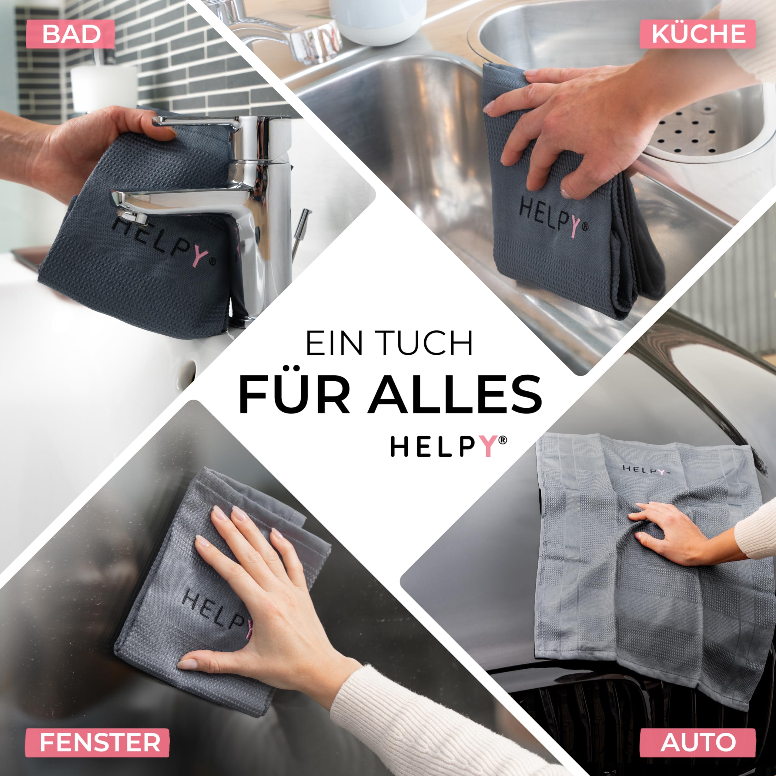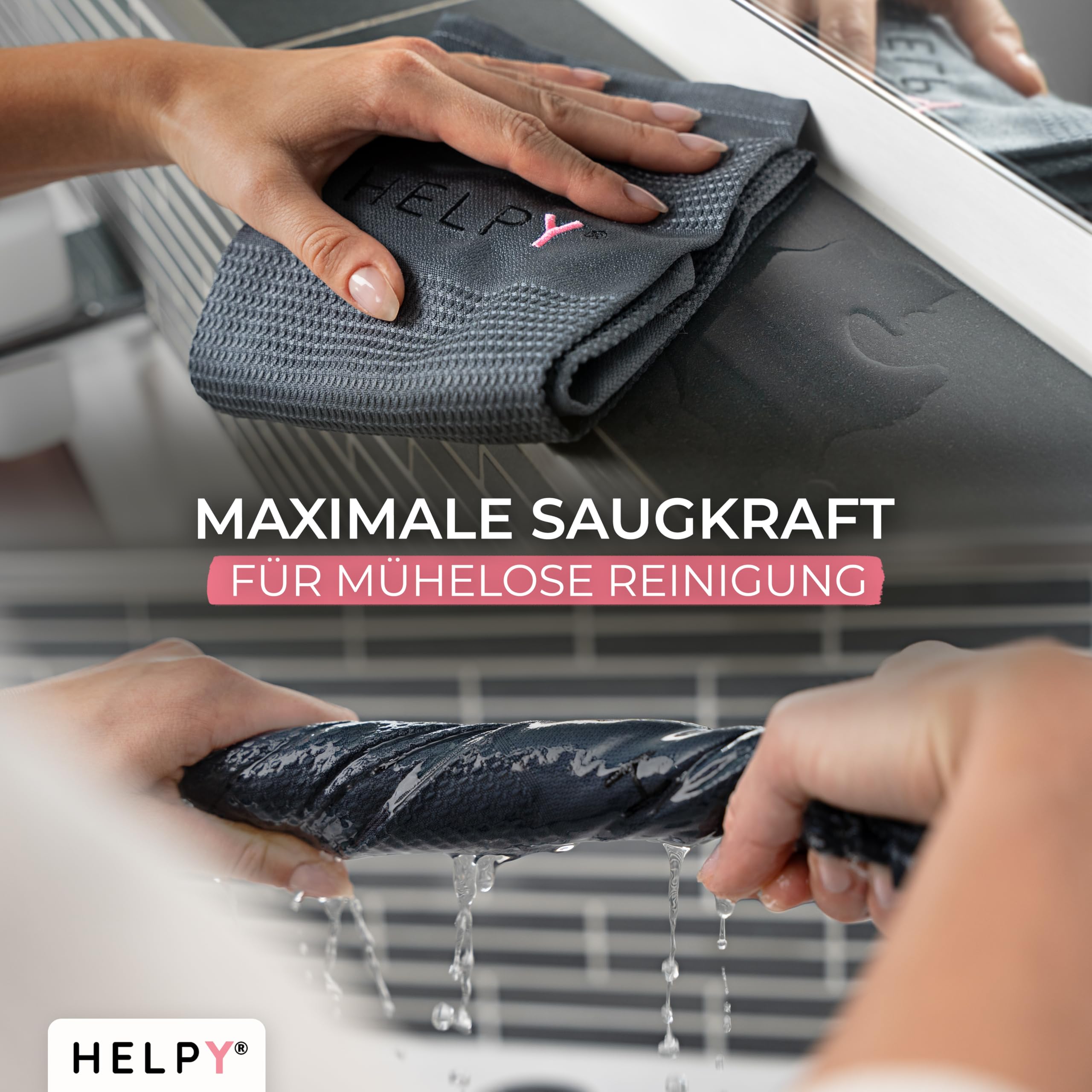 H E L P Y® - Putztücher [2er Set] - streifenfreie Fensterputztücher - fusselfreie Reinigungsergebnisse - Microfasertuch für Küche, Bad, Auto, Fenster - grau