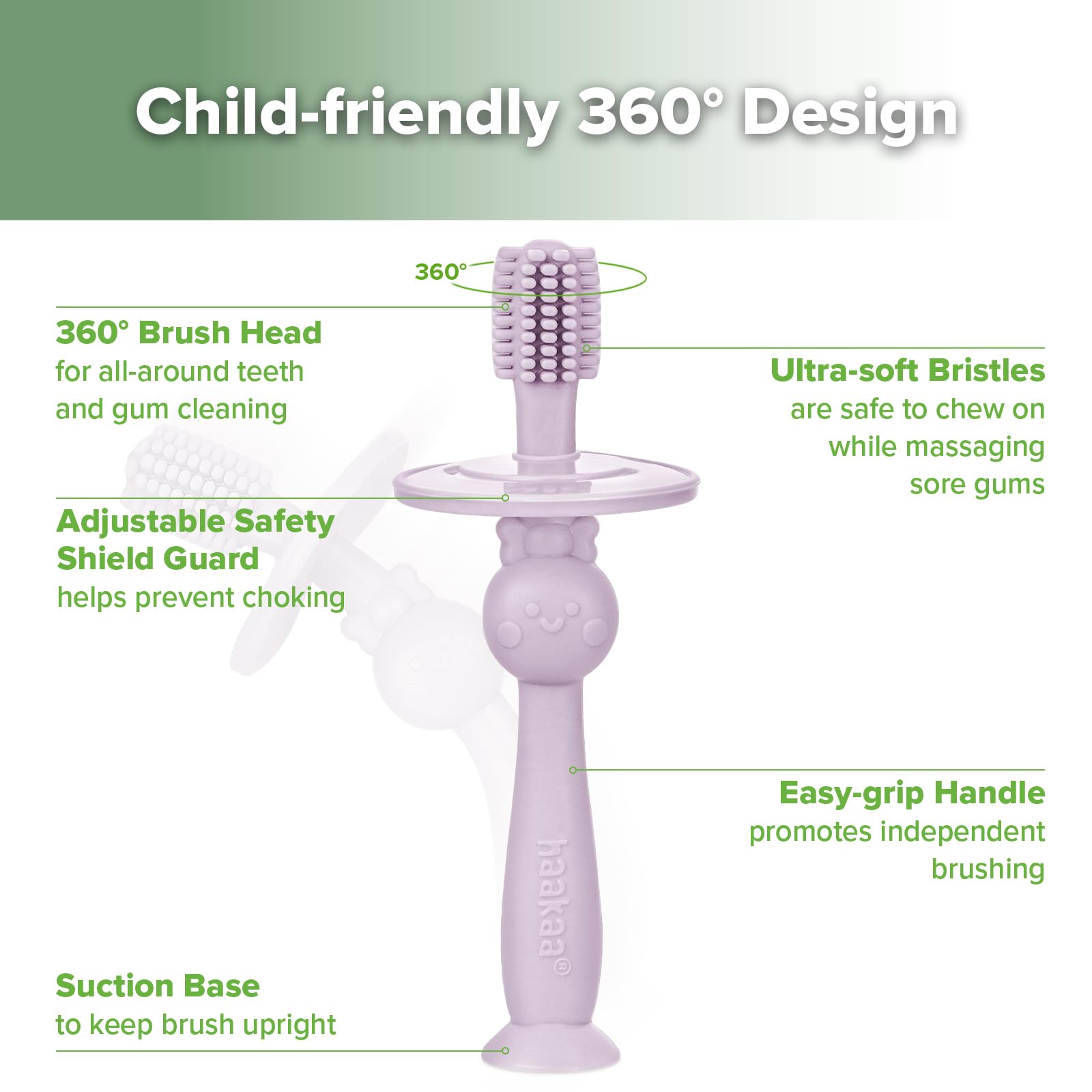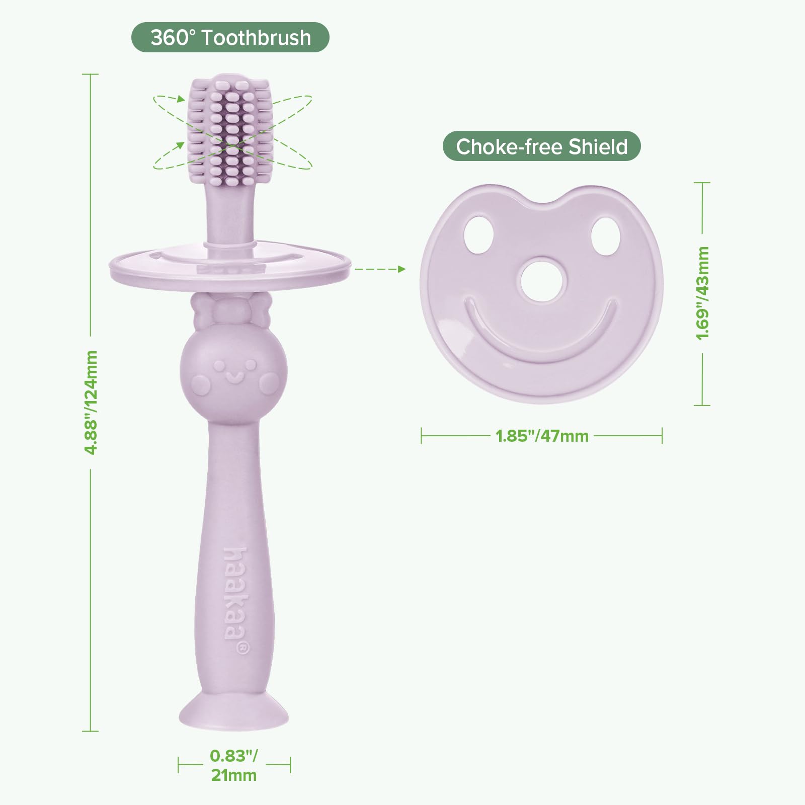 haakaa 360° Baby Zahnbürste mit Saugfuss - Sanfte Reinigung für Säuglings-Selbstbürstentraining, Sorft Lebensmittelechtes Silikon, Baby Zahnen Linderung - Lavendel, 1 Stück