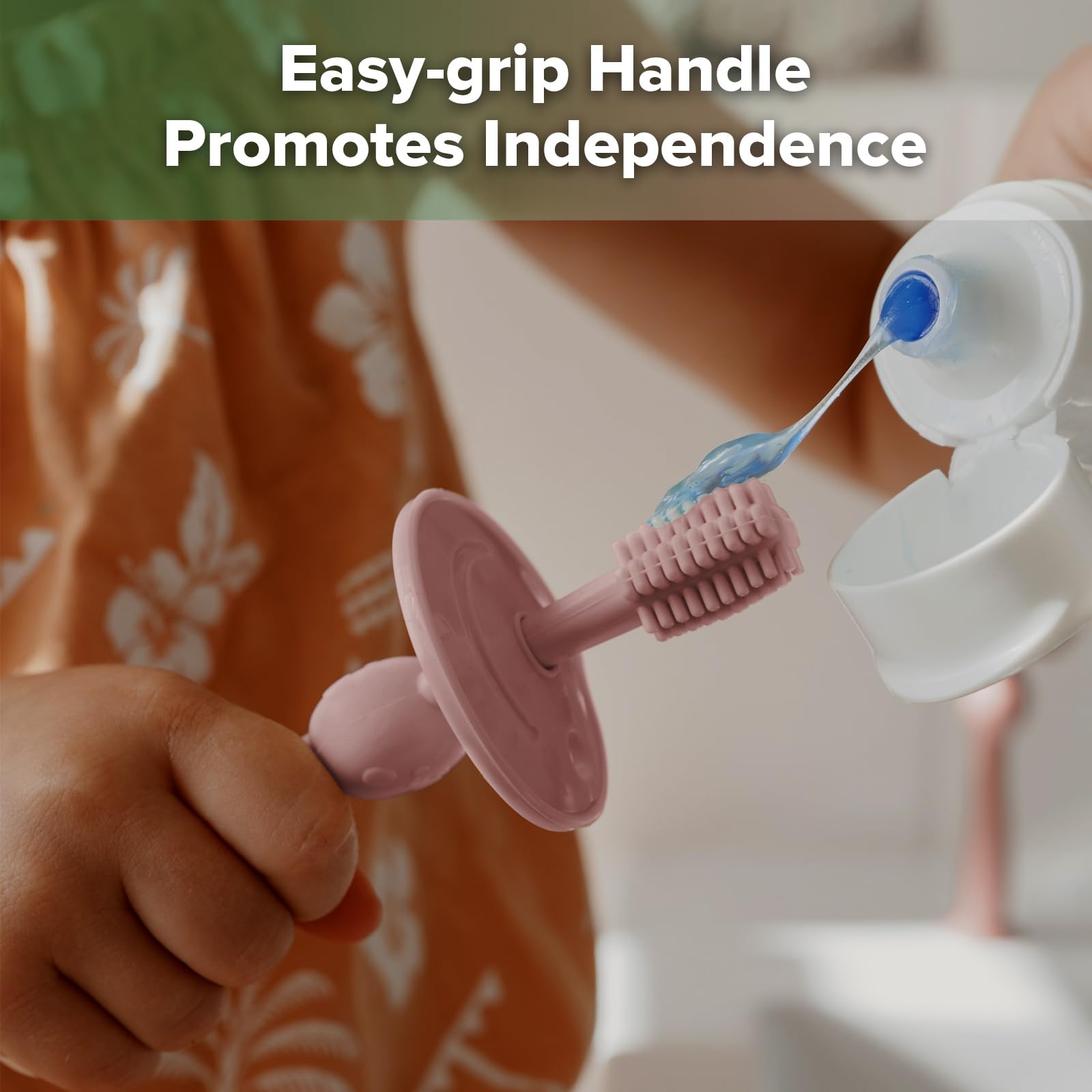 haakaa 360° Baby Zahnbürste mit Saugfuss - Sanfte Reinigung für Säuglings-Selbstbürstentraining, Lebensmittelechtes Silikon, Einstellbarer Sicherheitsschild - Blush (1 Stück)