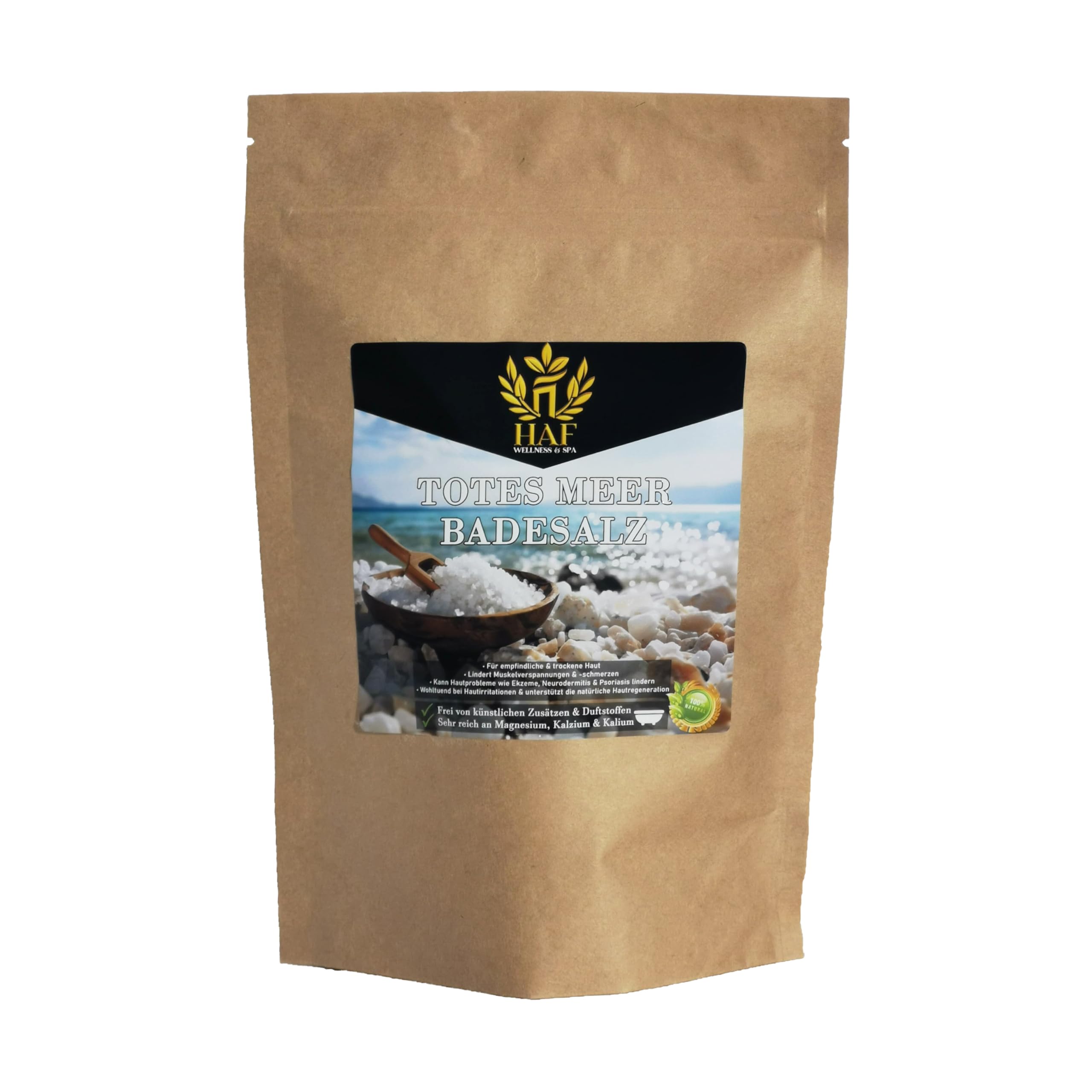 HAF® Premium Totes Meer Badesalz für empfindliche & trockene Haut | Meersalz 100% naturrein aus Jordanien für den Stressabbau | Mineralsalz für guten Schlaf & zur Körperpflege | 1 kg im Beutel