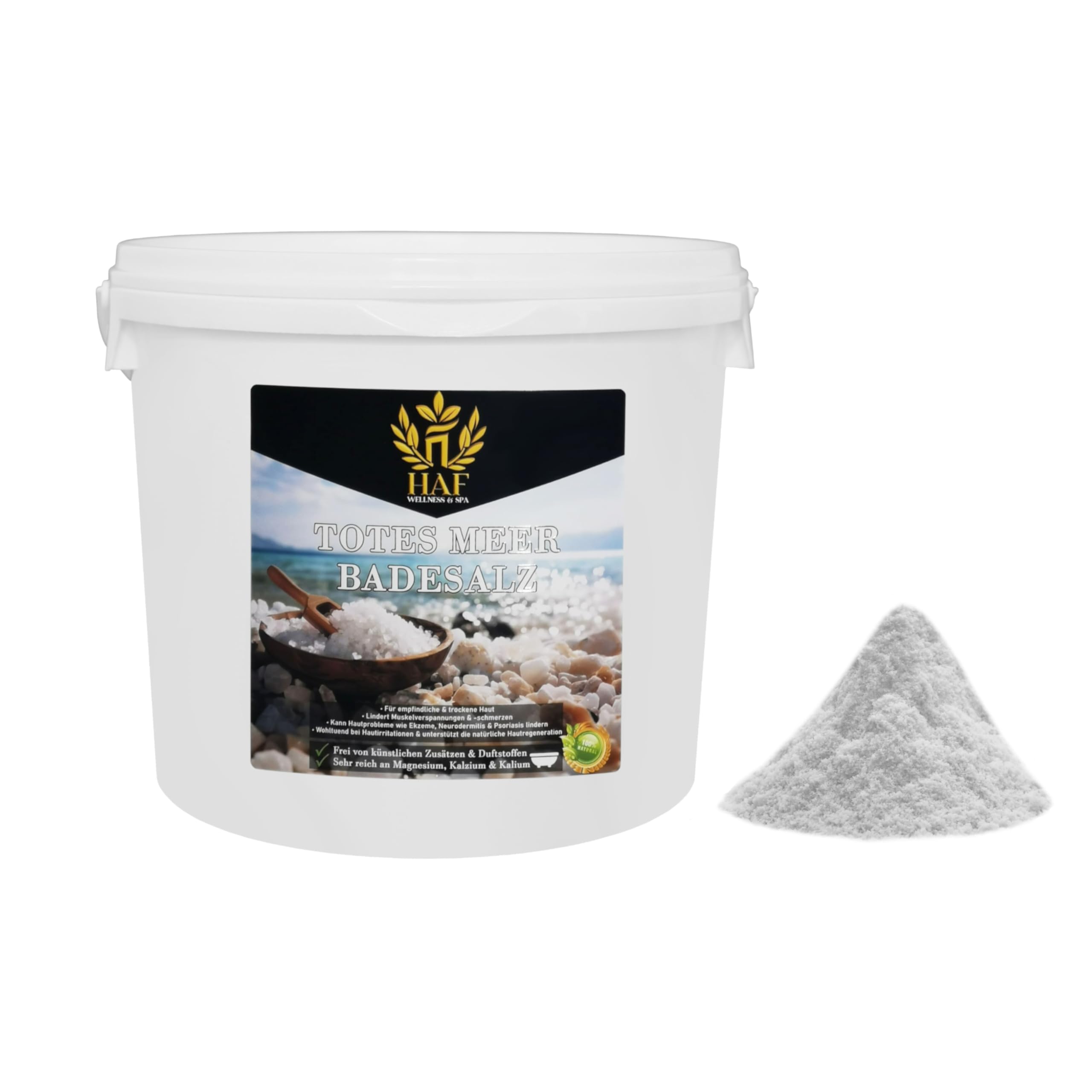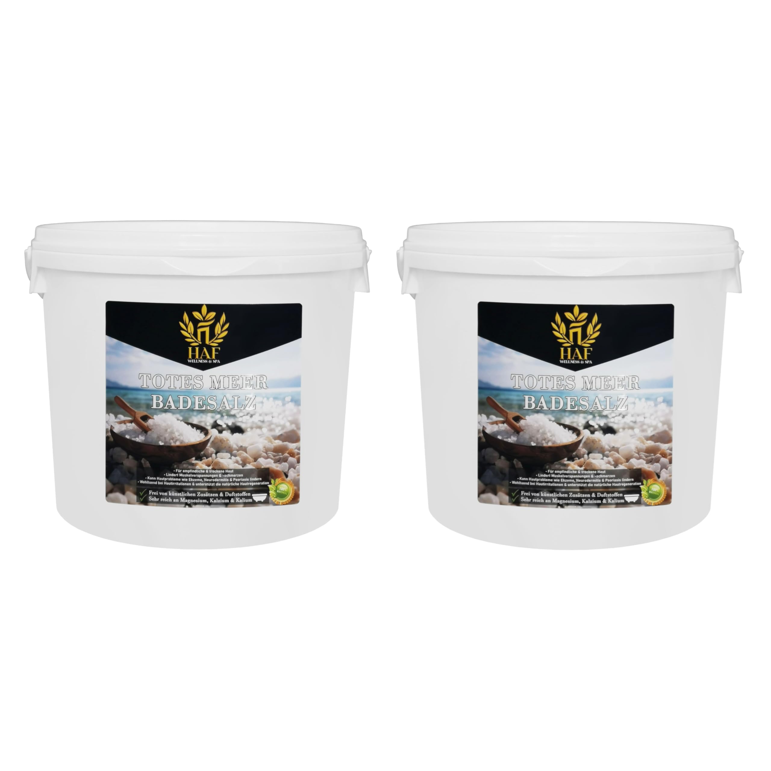 HAF® Premium Totes Meer Badesalz für empfindliche & trockene Haut | Meersalz 100% naturrein aus Jordanien für den Stressabbau | Mineralsalz für guten Schlaf & zur Körperpflege | 10 kg in Eimern
