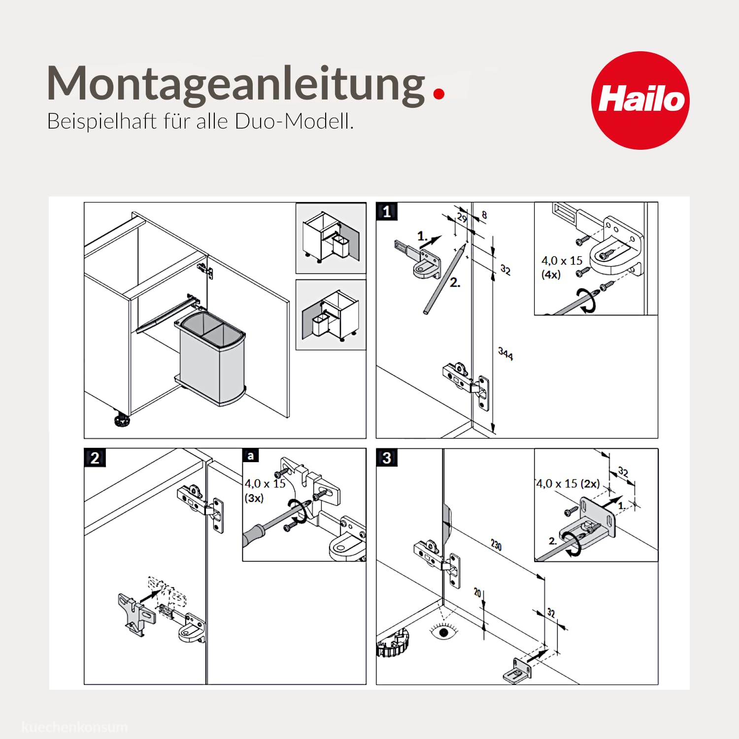 In der Lieferung befindet sich das komplette Abfalltrennsystem incl. Montageanleitung und Montagematerial