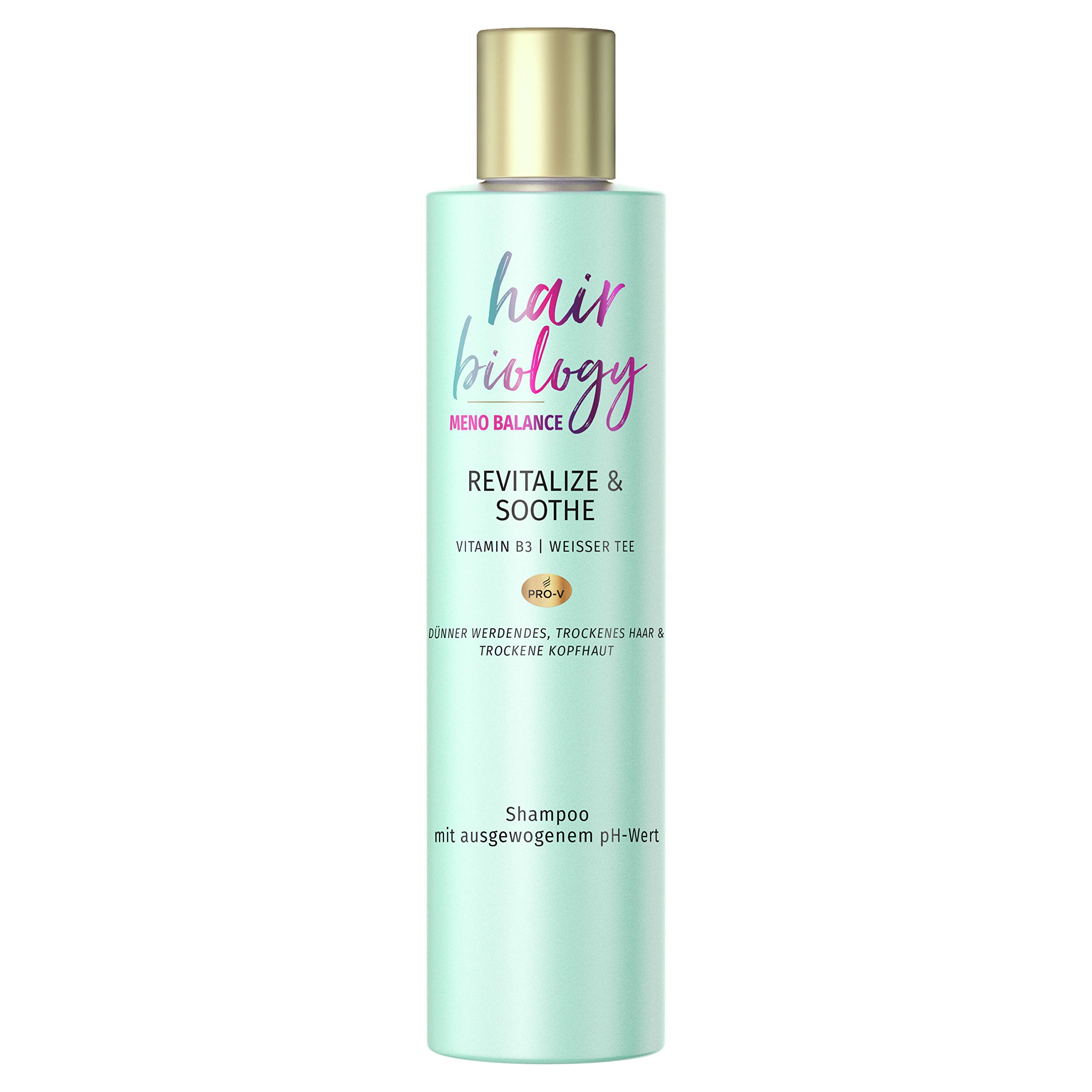 Hair Biology Shampoo, Meno Balance Revitalize & Soothe, 250ml, mit Pro-V, Vitamin B3 und weissem Tee, für dünner werdendes Haar und trockene Kopfhaut, Menopause, Wechseljahre, Haarpflege