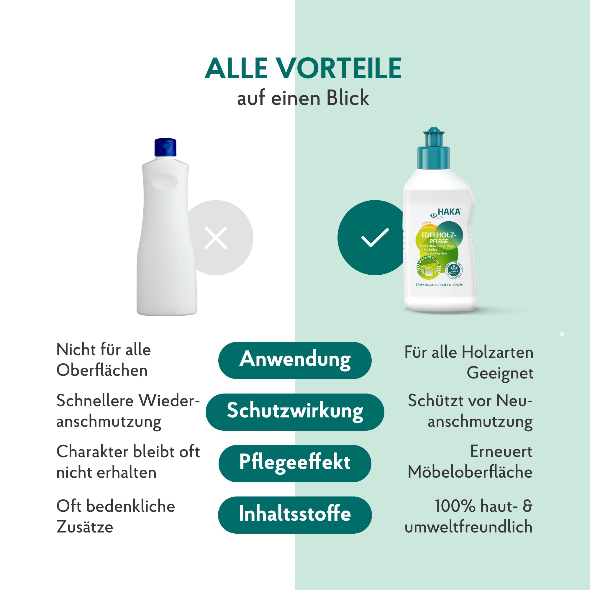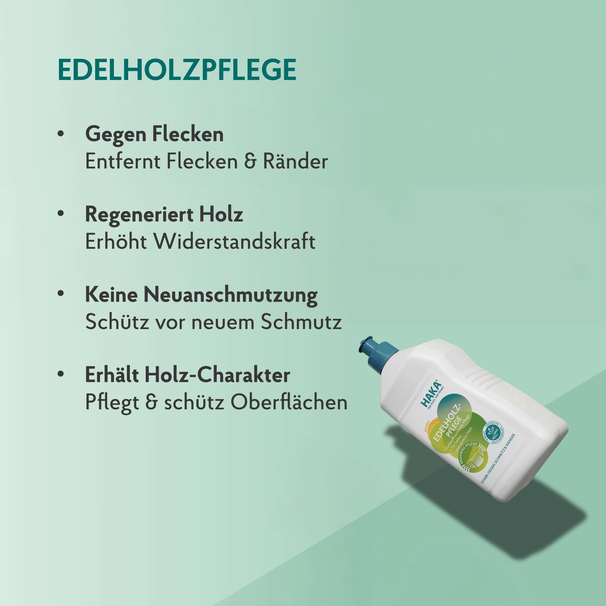 HAKA Edelholzpflege, 250 ml, für geöltes & lackiertes Holz, frischt Farbe auf, entfernt Schmutz & Ränder, bringt streifenfreien Glanz zurück, Honigduft, umweltfreundlich
