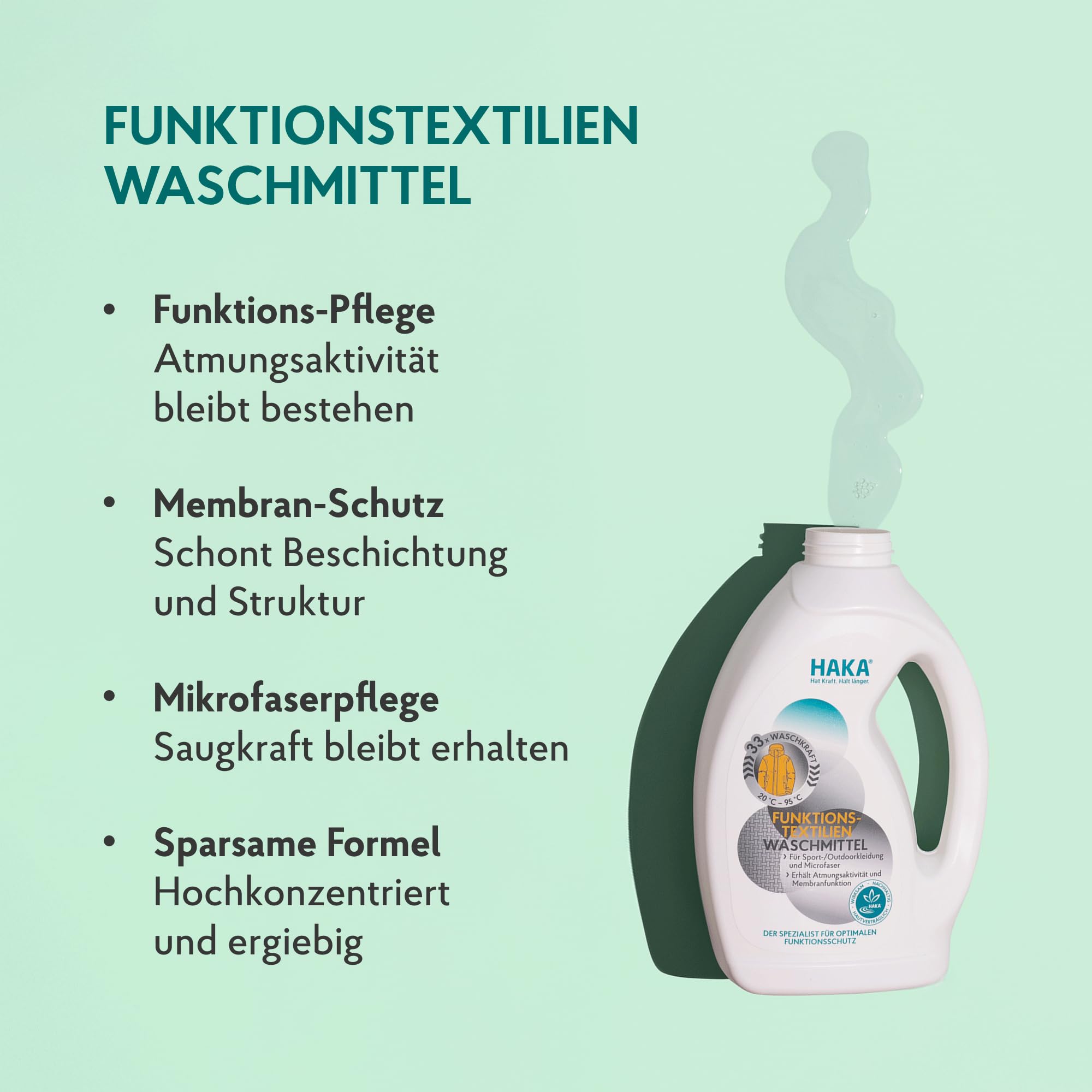 HAKA Funktionstextilien Waschmittel Doppelpack, 66 Waschgänge, für Sportwäsche, Outdoorkleidung und Microfasern, 2 x 1 l