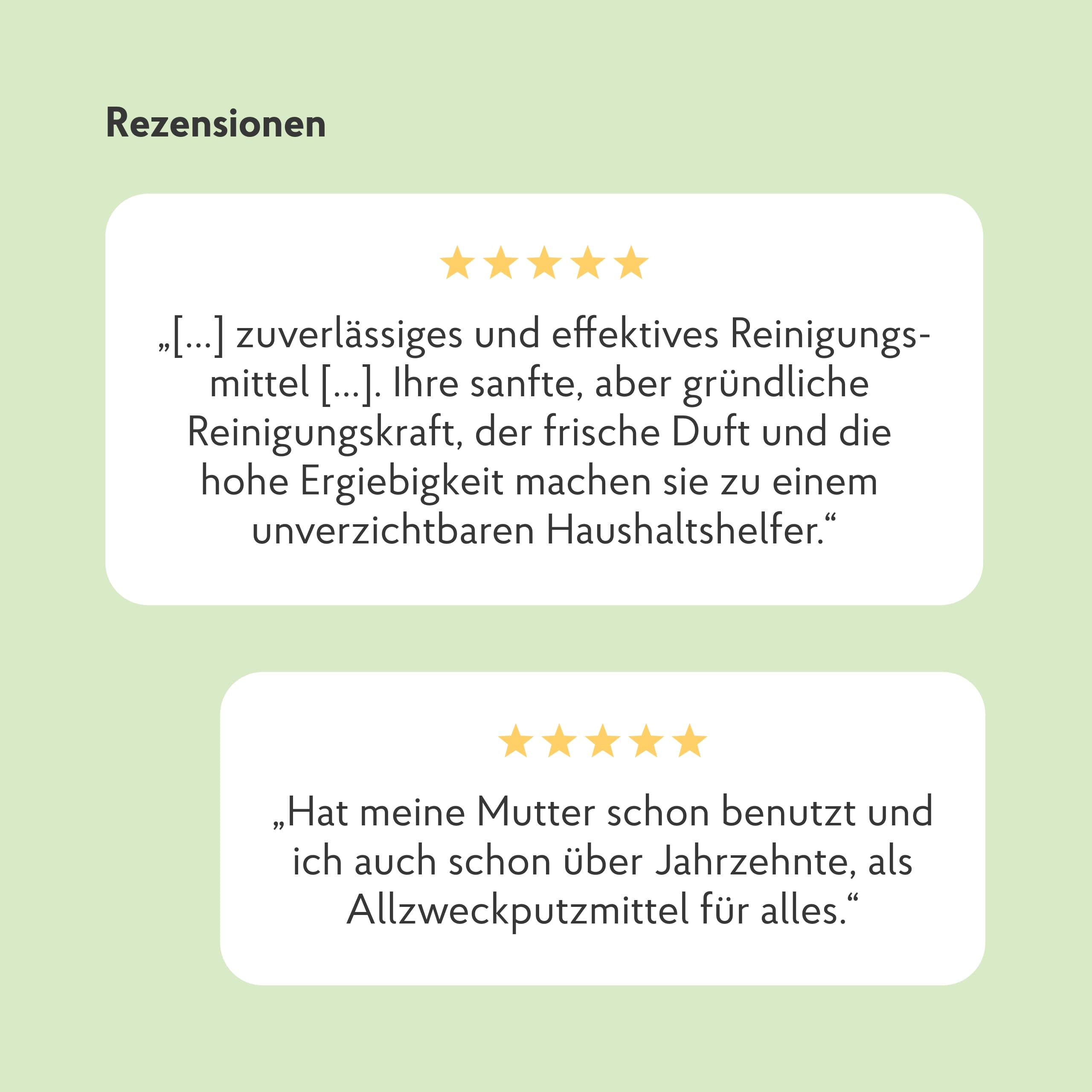 • MATERIAL- & HAUTSCHONEND: Die pH-neutrale Rezeptur ist oberflächenschonend und sanft zu deiner Haut. Der Allesreiniger kann bedenkenlos von Allergiker*innen verwendet werden.