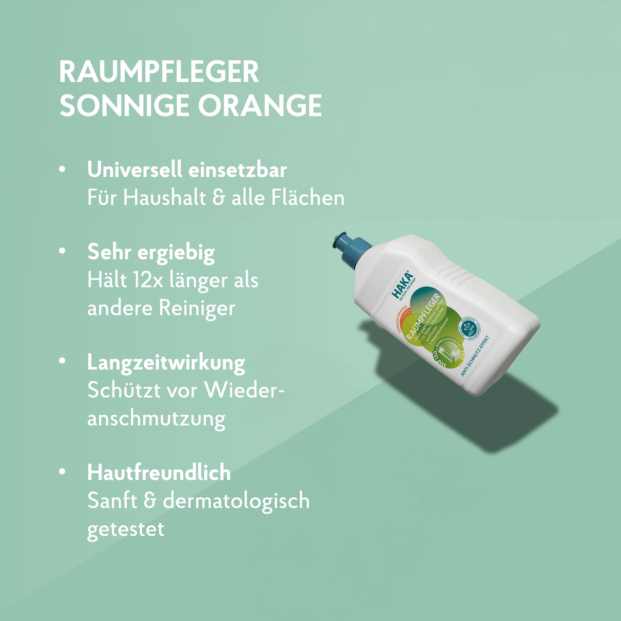 HAKA Raumpfleger Sonnige Orange, 750ml, Allzweckreiniger für Böden & Oberflächen, hautfreundlich & ohne Mikroplastik, vegan, Orangenduft, strahlende Sauberkeit im ganzen Haus