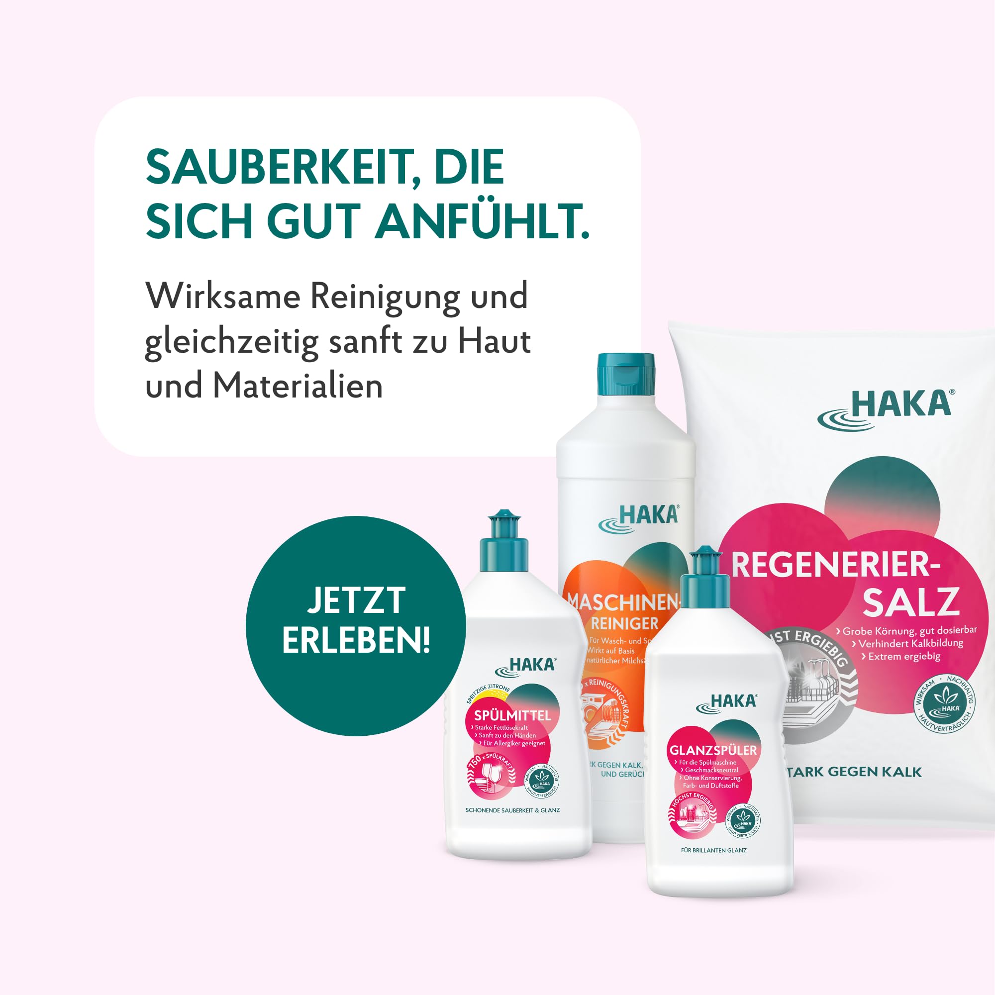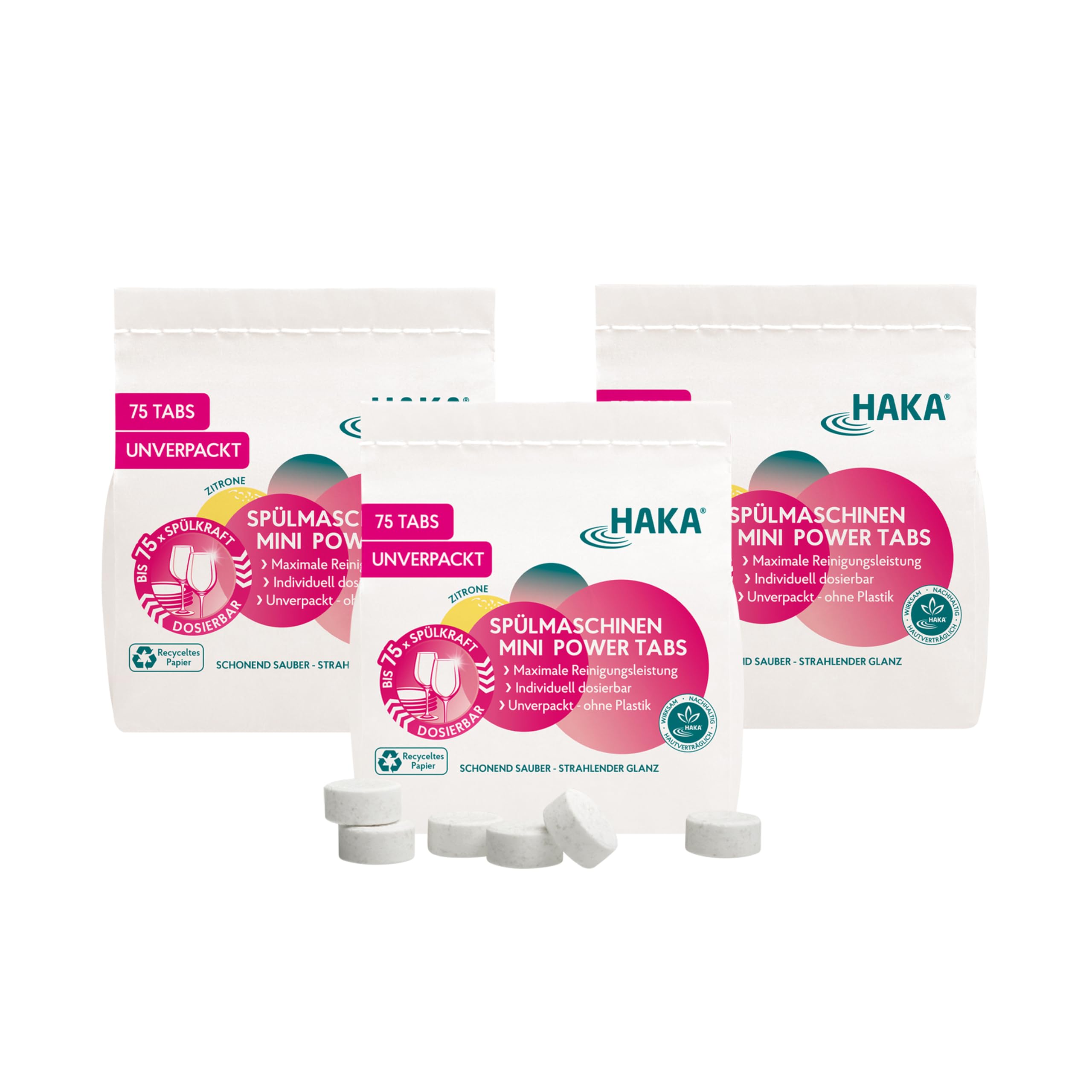 HAKA Spülmaschinentabs, 3x 75 Stück, leistungsstarke Geschirrspültabs ohne Plastikfolie, für strahlend sauberes Geschirr, kompakt & sparsam, Fettlösekraft, in umweltfreundlicher Verpackung