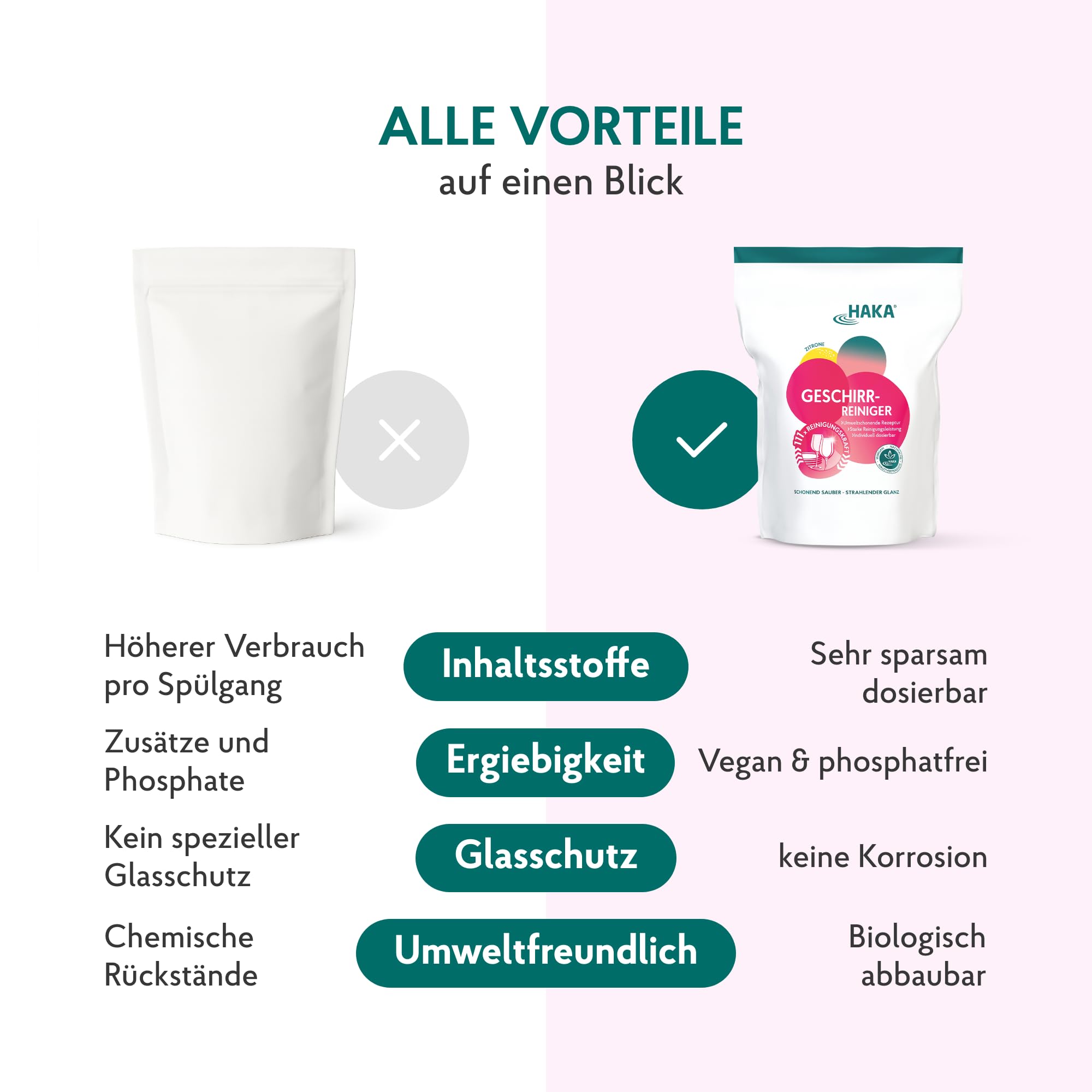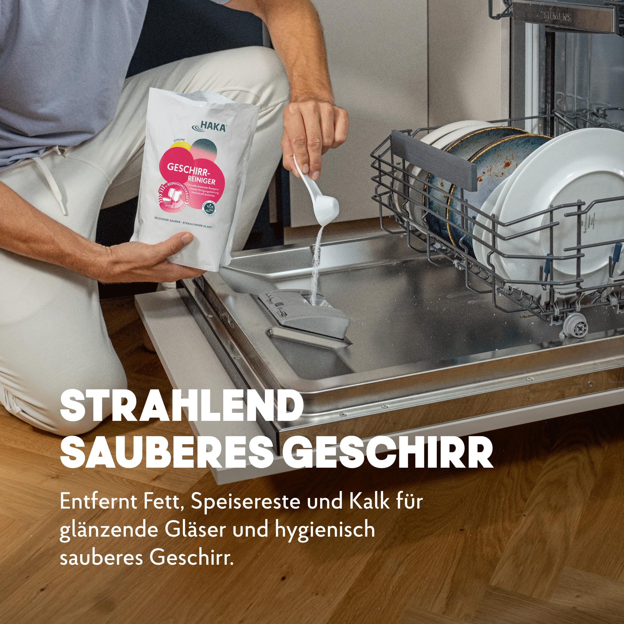 • UMWELT- & HAUTFREUNDLICH: HAKA steht für haut- und umweltfreundliche Produkte. Durch den Verzicht auf Phosphate können Sie umweltbewusst und sauber spülen - ohne Angst vor Schäden.
